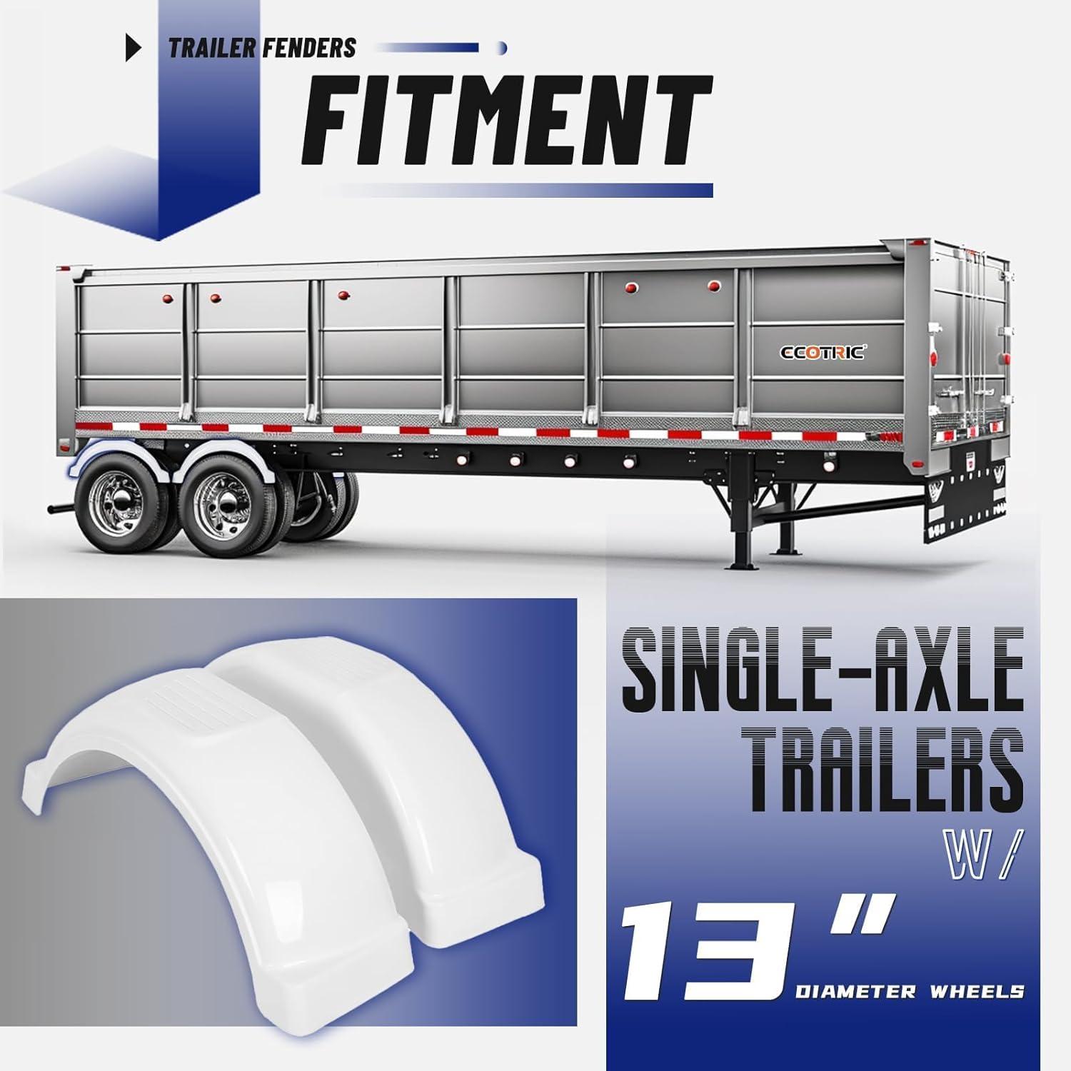FITMENT – These trailer fenders fit single-axle trailers 13″ diameter wheels. Please confirm the size of the product in advance