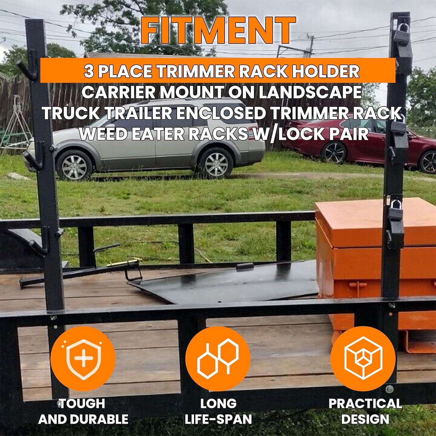ECOTRIC 3 Place Weed Eater Rack Carrier Mount On Landscape Truck Trailer Enclosed Trimmer Rack Holder w/Lock Pair Steel Lockable(3 Locking Positions)