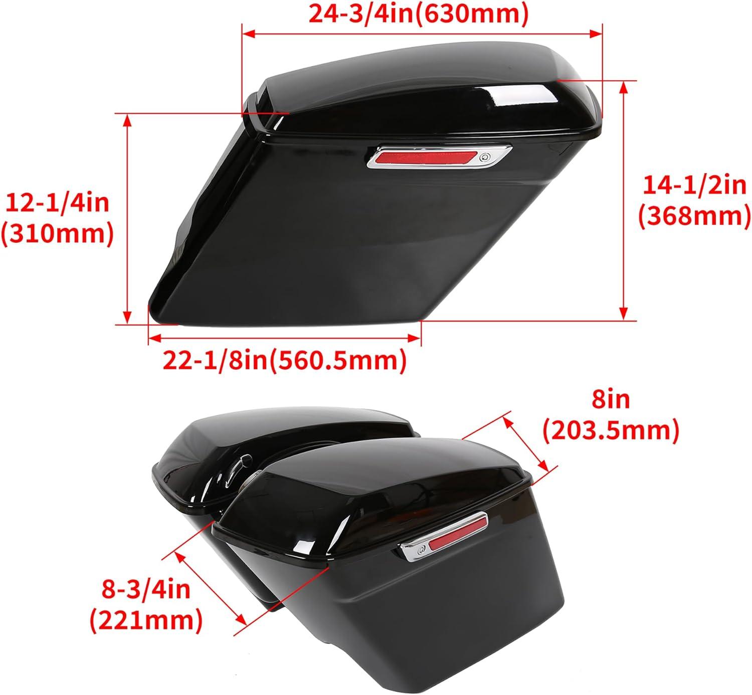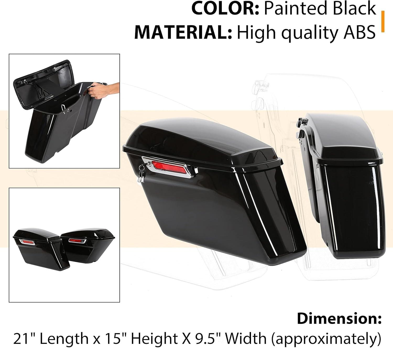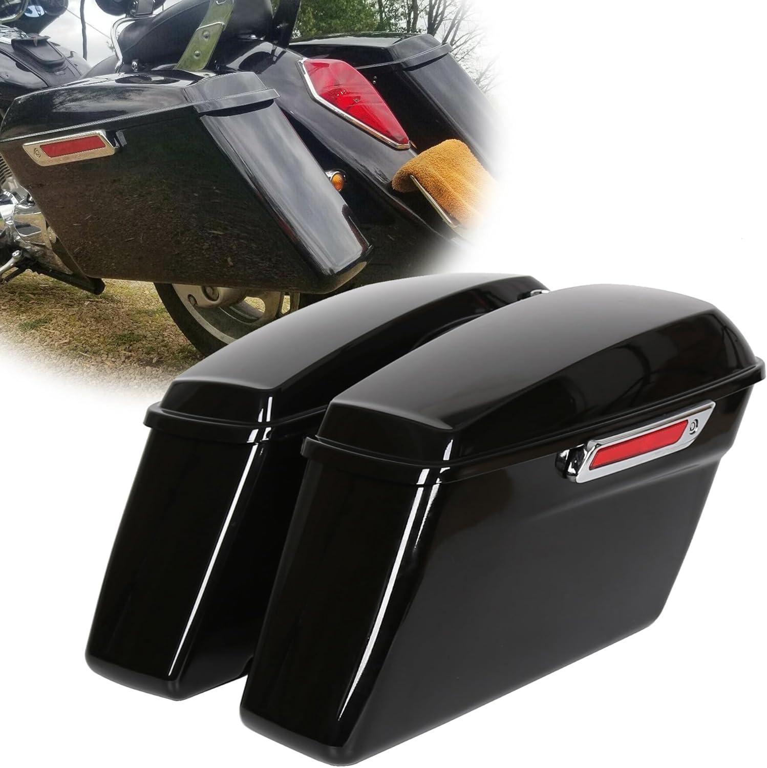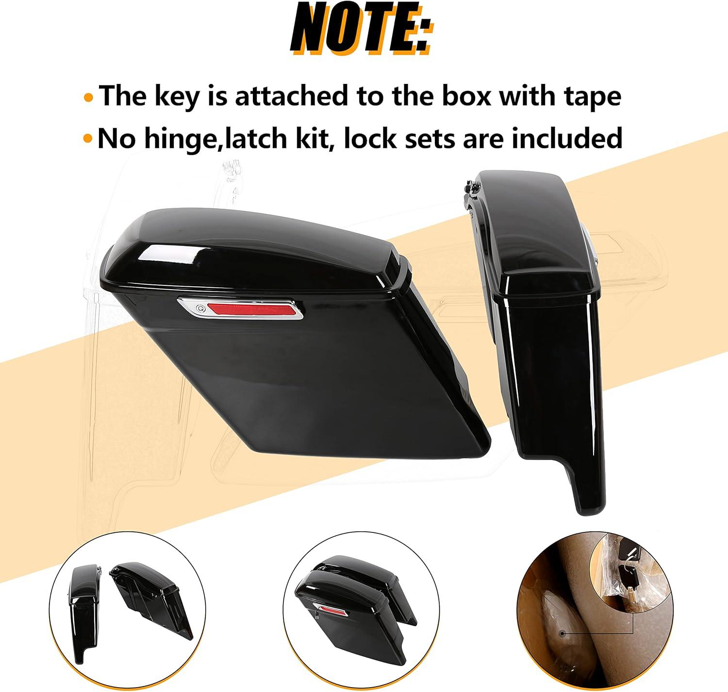 Saddle bag compatible with 2014-2024 Harley Touring models(FLT, FLHT, FLHTCU, FLHRC, Road King, Road Glide, Street Glide, Electra Glide, Ultra-Classic). Package: 1 Pair Left & Right Saddlebag W/ Latch, Lock & 2 Keys. Note: The key is attached to the box with tape.