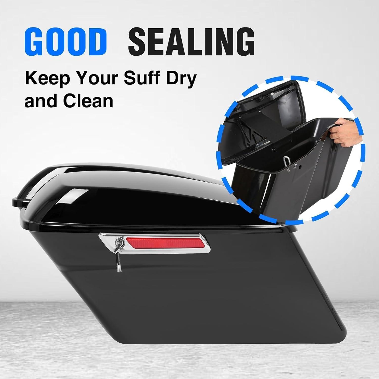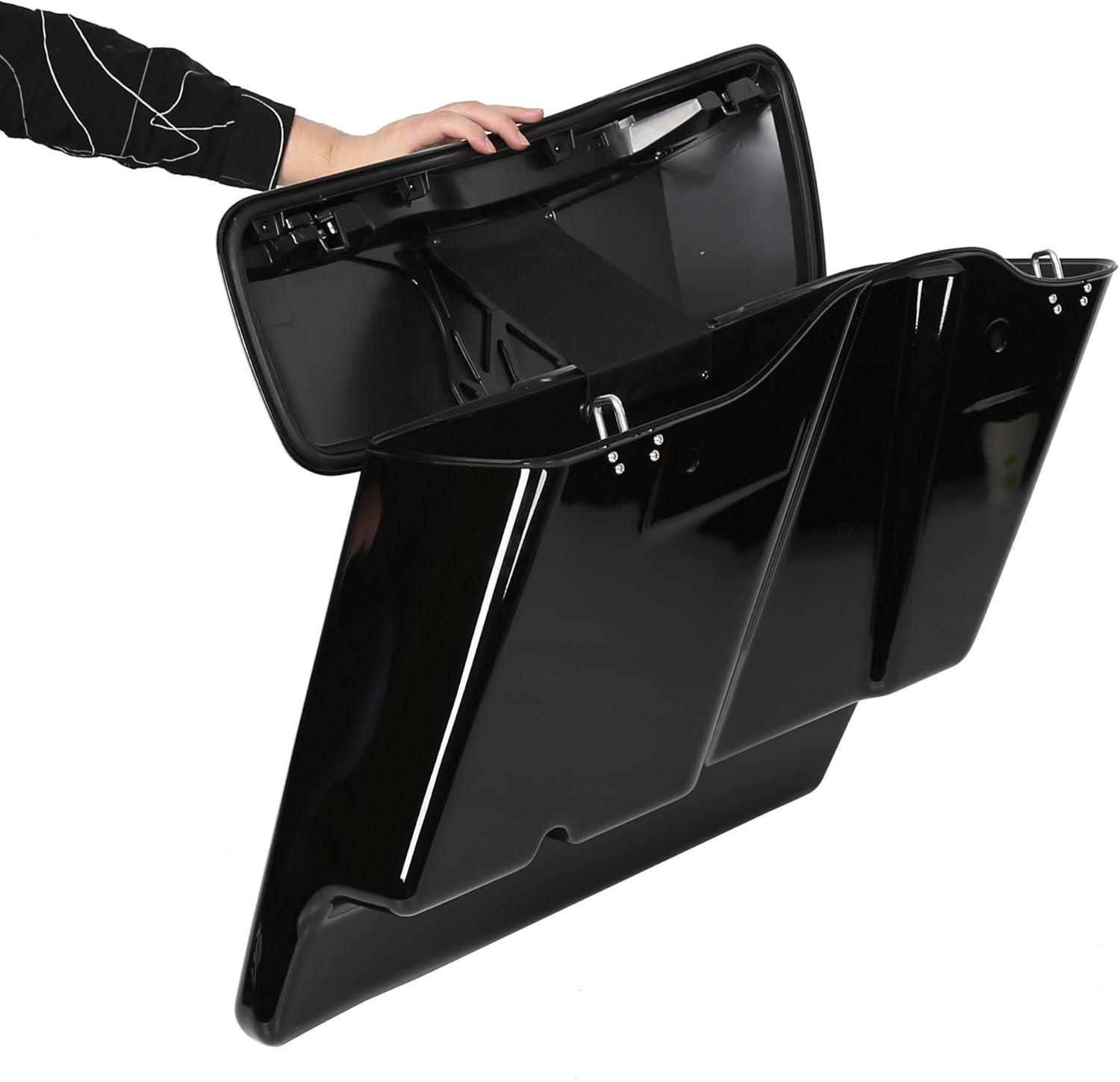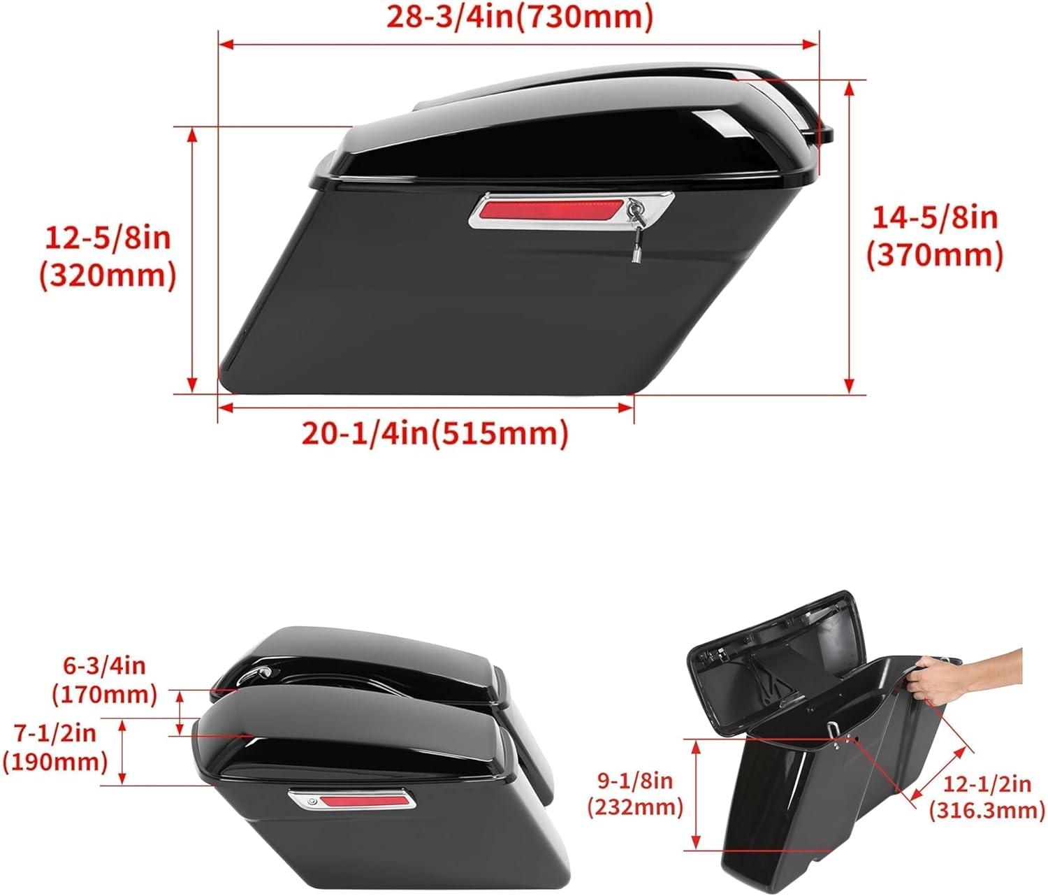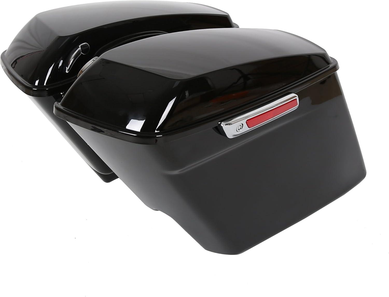Saddle bag compatible with 2014-2024 Harley Touring models(FLT, FLHT, FLHTCU, FLHRC, Road King, Road Glide, Street Glide, Electra Glide, Ultra-Classic). Package: 1 Pair Left & Right Saddlebag W/ Latch, Lock & 2 Keys. Note: The key is attached to the box with tape.