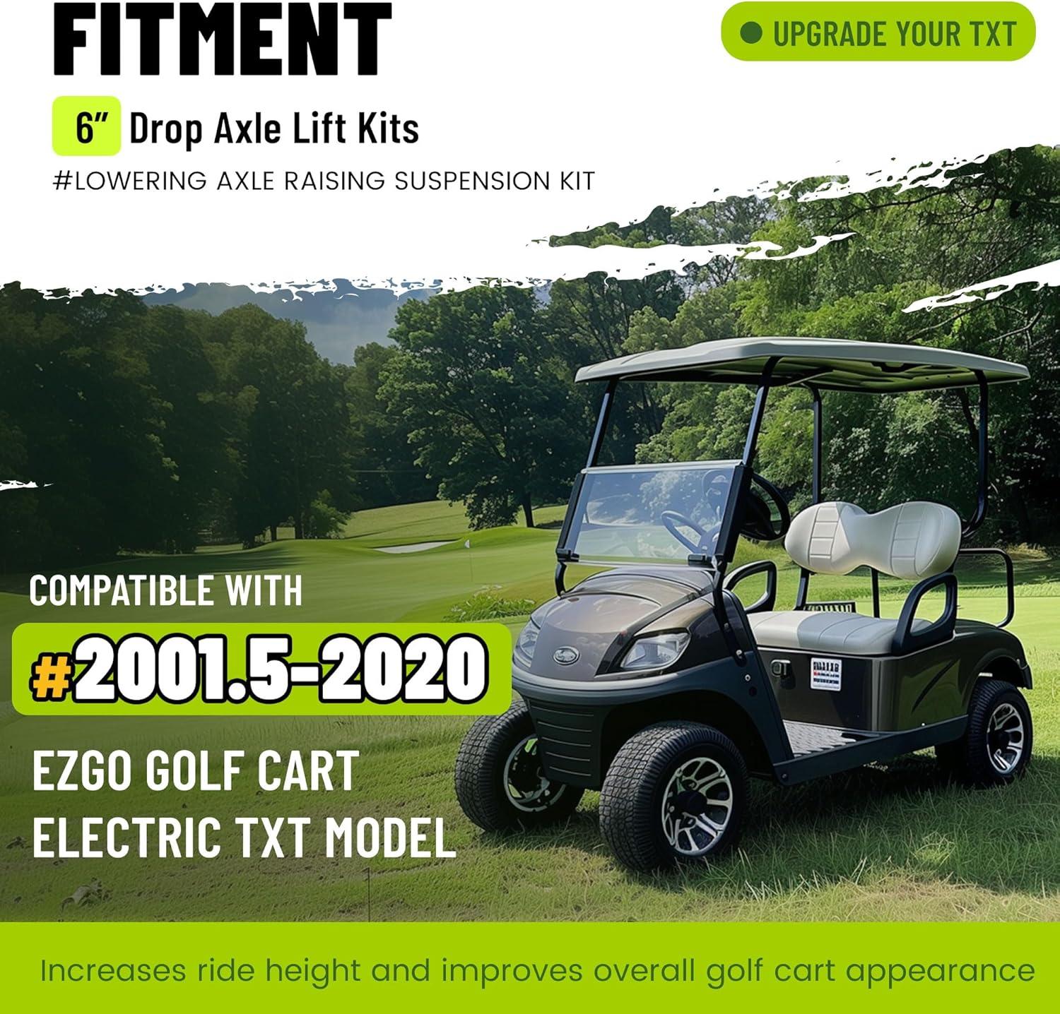 [Precise Fitment] Compatible exclusively with 2001.5-2020 EZGO TXT Electric models. The 6″ drop axle design replaces OEM front axles to elevate ride height and optimize trail performance.