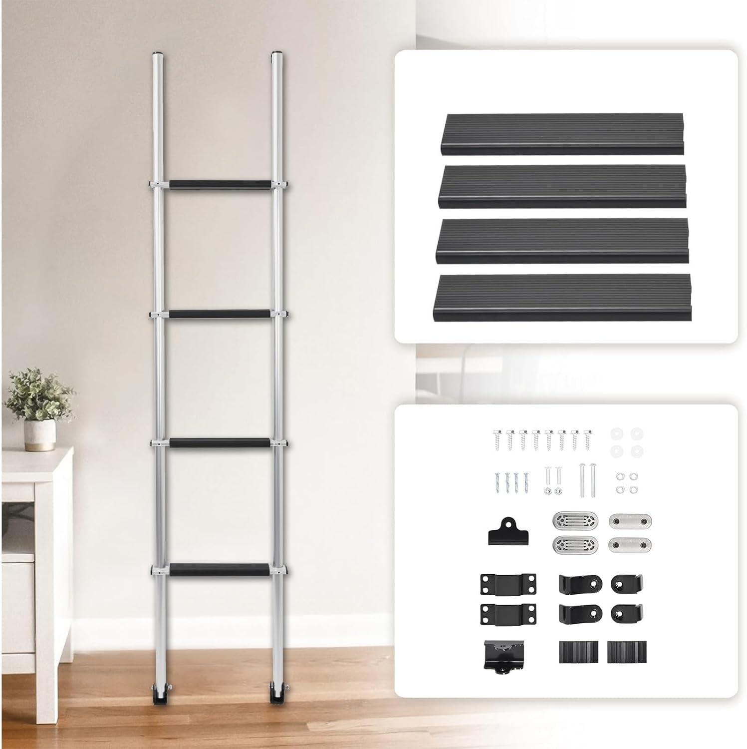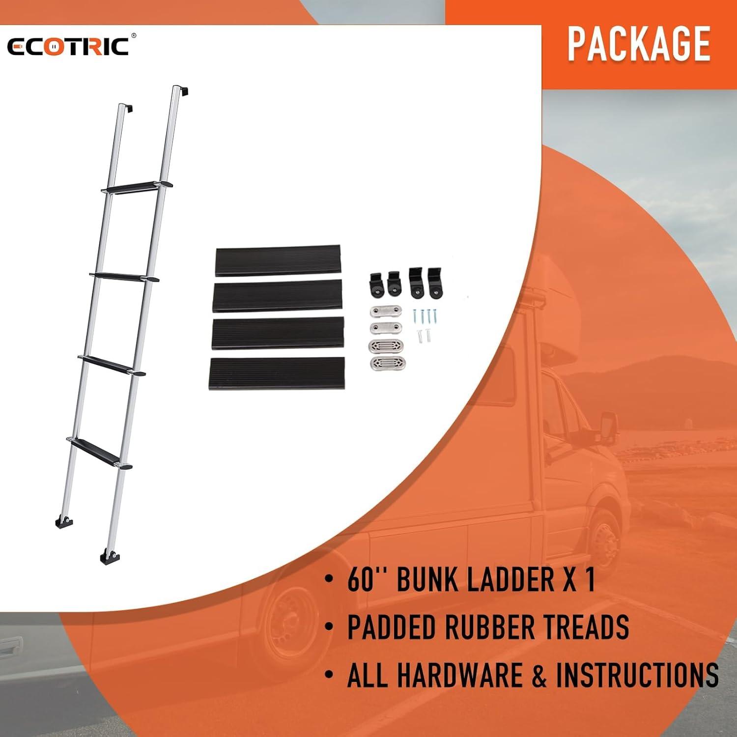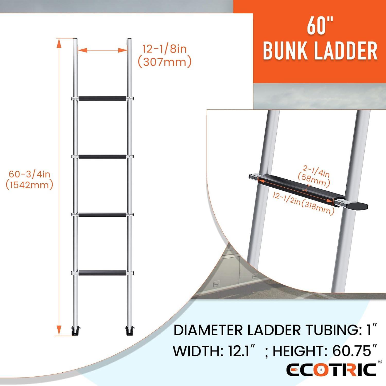 ECOTRIC 60" Bunk Bed Ladder Compatible with RV Mount Boarding W/Hook & Rubber Foot Pads, Camper Travel Trailer Bed Step, 4 Anti-Slip Step, Aluminum Portable Safety Home