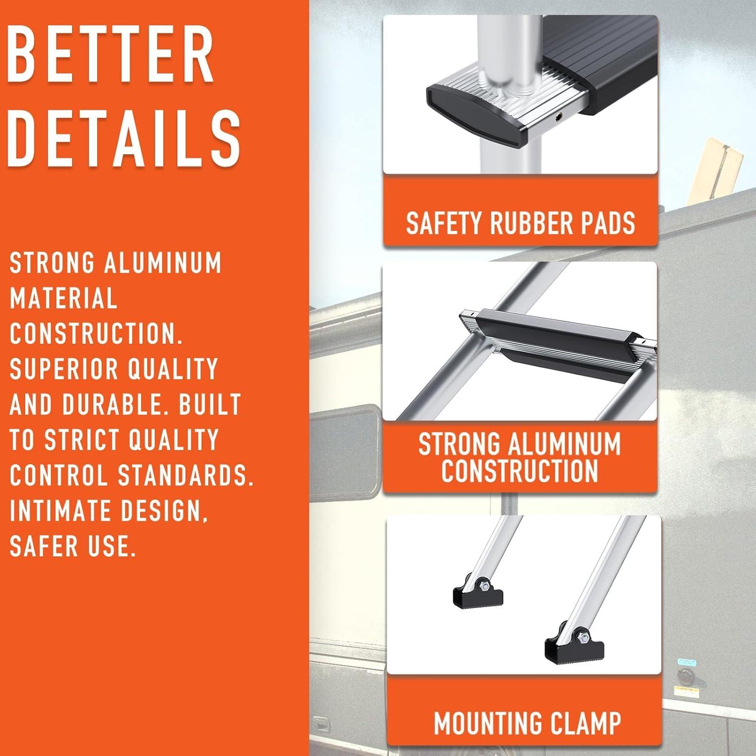 imageECOTRIC 60quot Bunk Bed Ladder Compatible with RV Mount Boarding WHook ampamp Rubber Foot Pads Camper Travel Trailer Bed Step 4 AntiSlip Step Aluminum Portable Safety Home