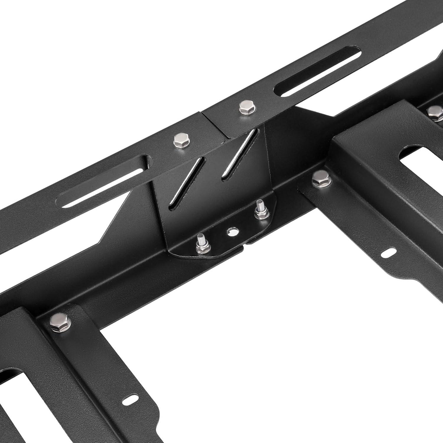 Detailed specifications: Mounts to vehicle's cross bars with 4 universal U-bolts.The roof basket can be extended to 67 inches or set to 41 inches only. Overall Dimensions w/No Extension: 41″(L) x 38″(W) x 4.75″(H). Overall Dimension w/ Extension: 67″ x 39″ x 5.1″ U-Bolt spacing: 1-7/8'' x 3-3/4″. Weight Capacity : 550 LBS