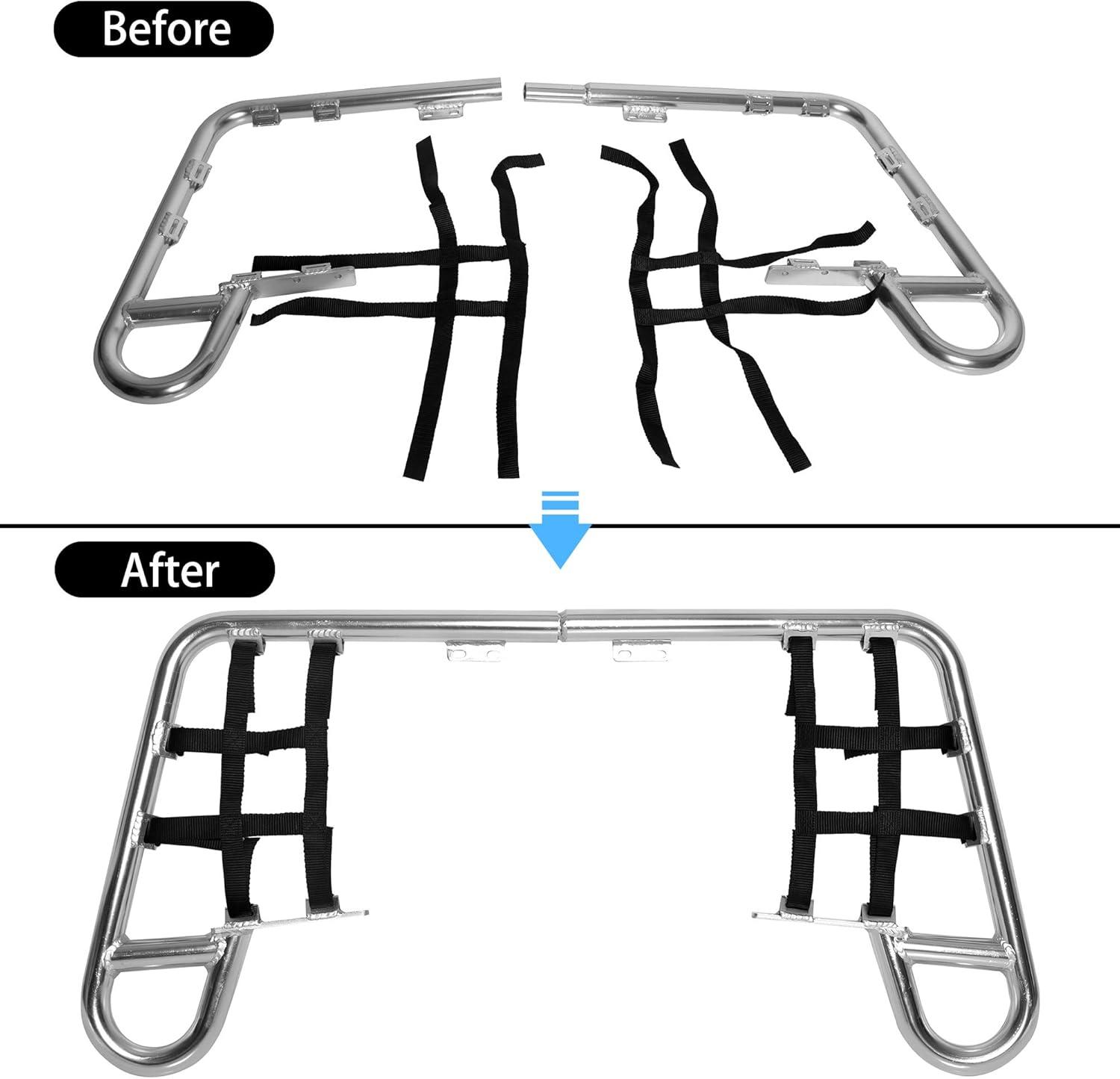 DURABLE: This pair of Nerf Bars are made from high quality aluminum to ensure superior strength and durability. It can protect frame and bodywork. Ready to handle tough environments. Standardized quality control procedures to make sure the quality. Designed to maximize rider protection and safety from dangerous aggressiveness and technical riding.