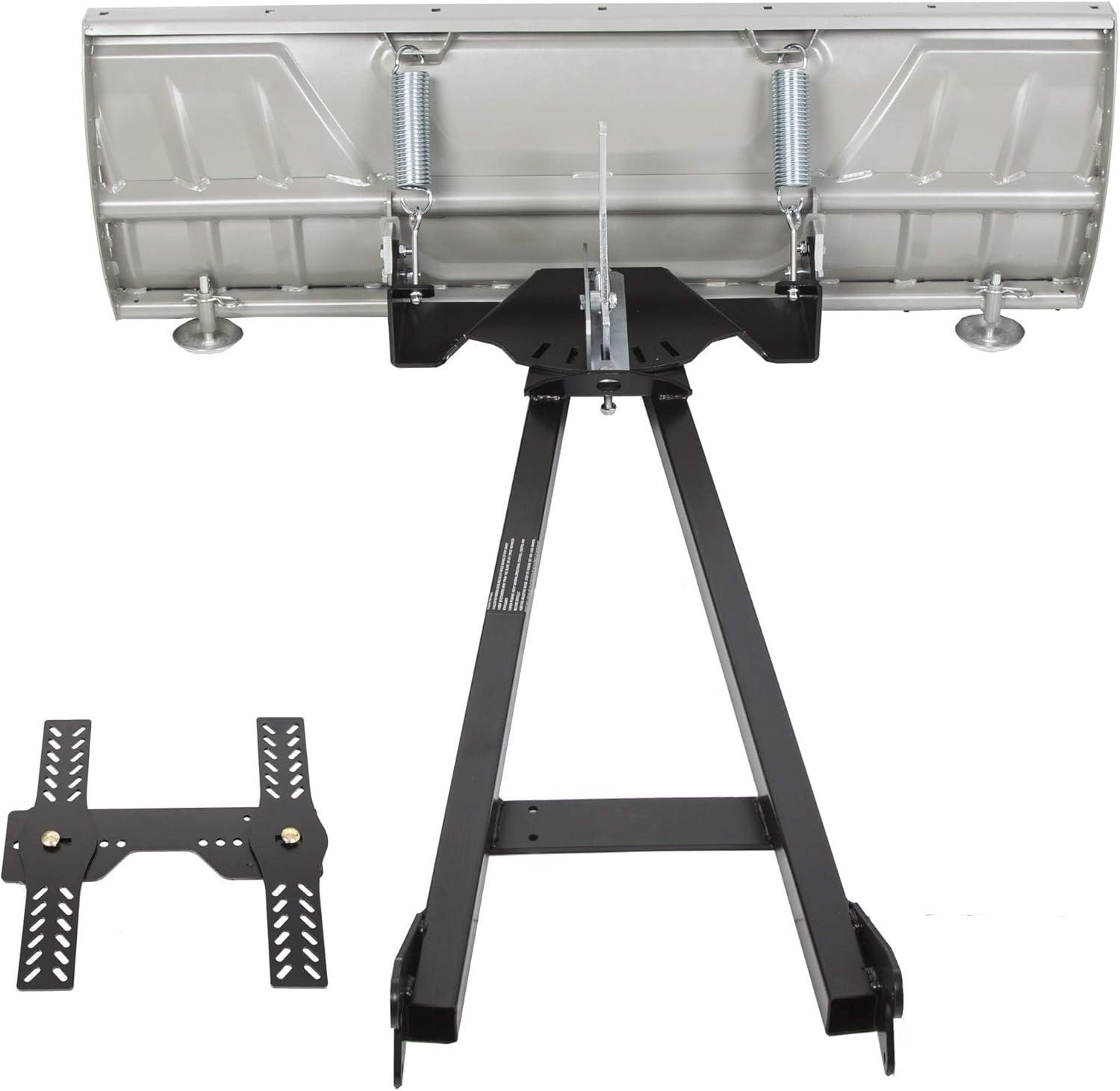 ATV Snow Plow complete universal kit package comes with blade, push tube and universal mount kit. Blade is made with heavy-duty stamped steel,push tube is constructed of square tube steel chassis, mid-mount kit is designed to mount to the underside of your vehicle chassis