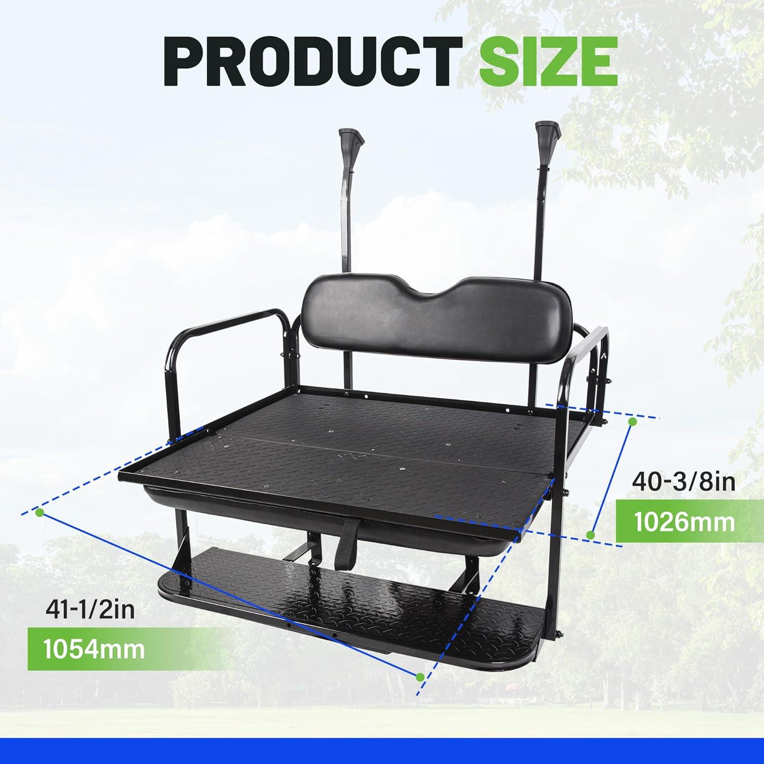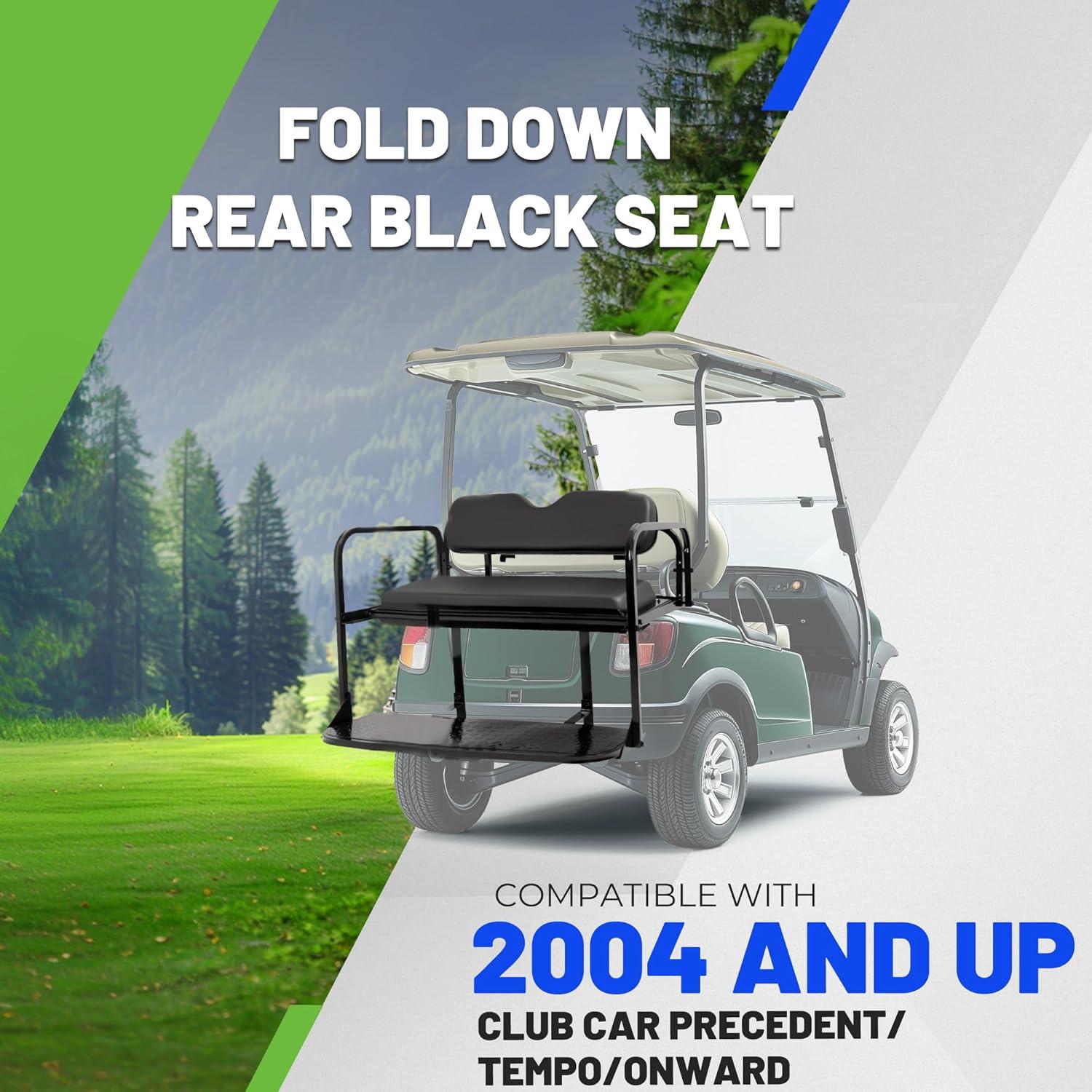 FITMENT – Fold Down Rear Black Seat Compatible with 2004 and Up Club Car Precedent/Tempo/Onward Gas or Electric Models w/ Black cushions. Transform your golf cart with ECOTRIC's heavy duty back seat kit – perfect for carrying passengers or cargo.