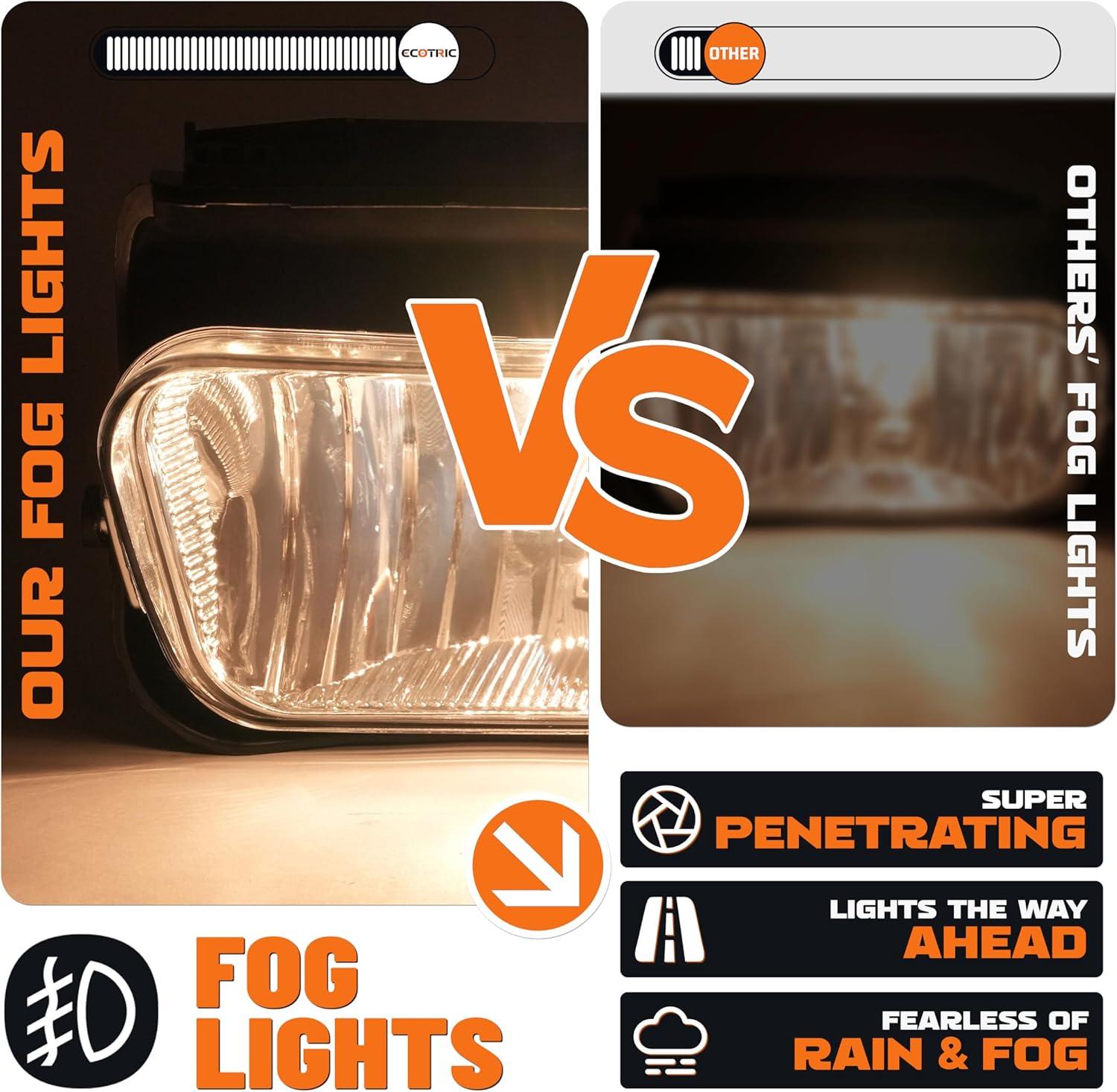 ECOTRIC Bumper Fog Lights Lamps Compatible with 2003-2007 Chevy Silverado 2002-2006 Chevy Avalanche with Bulbs Driver Side+Passenger Side