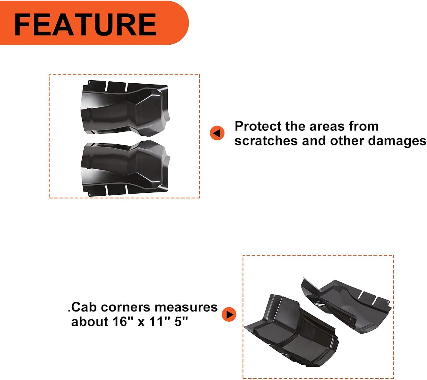 Size: Cab Corners Measures about 16″ x 11″ 5″. To be sure you are ordering the correct cab corner.