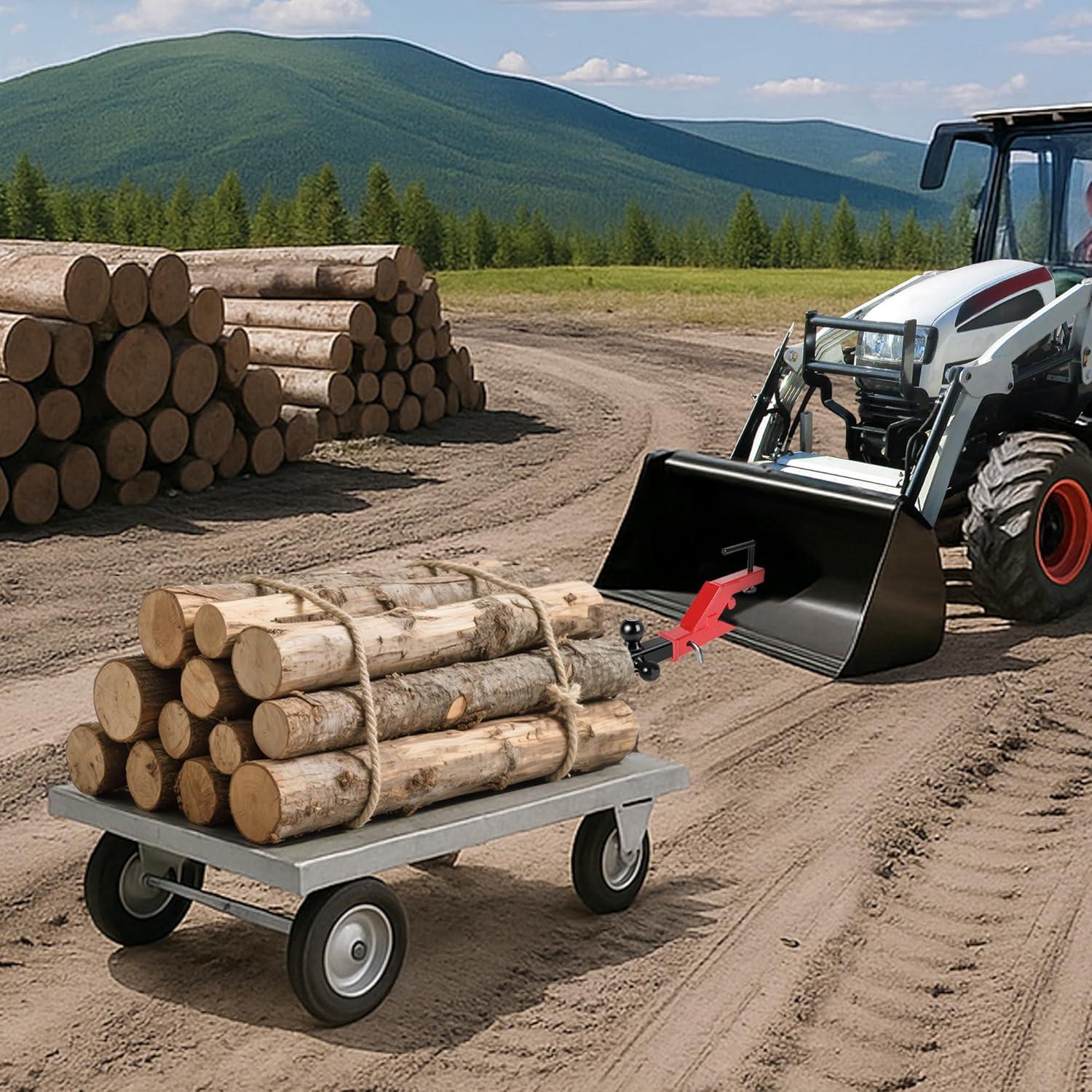 ECOTRIC Clamp On Trailer Hitch 2" Ball Mount Receiver Adapter Bucket Trailer Hitch Competible with Deere Bobcat Tractor Bucket Forklift