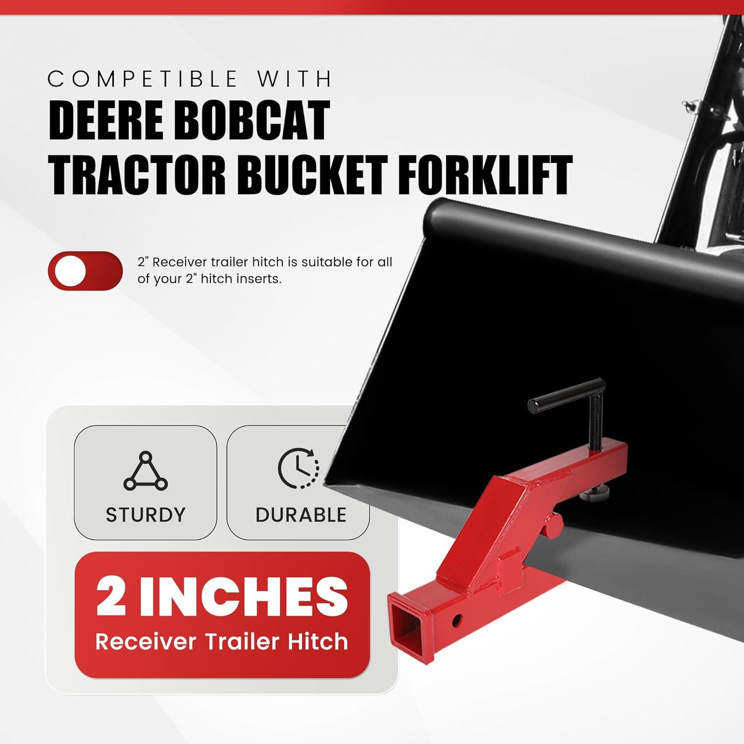 【Package Content】 1 x Clamp On Trailer Receiver Hitch, 2″ Tractor Bucket