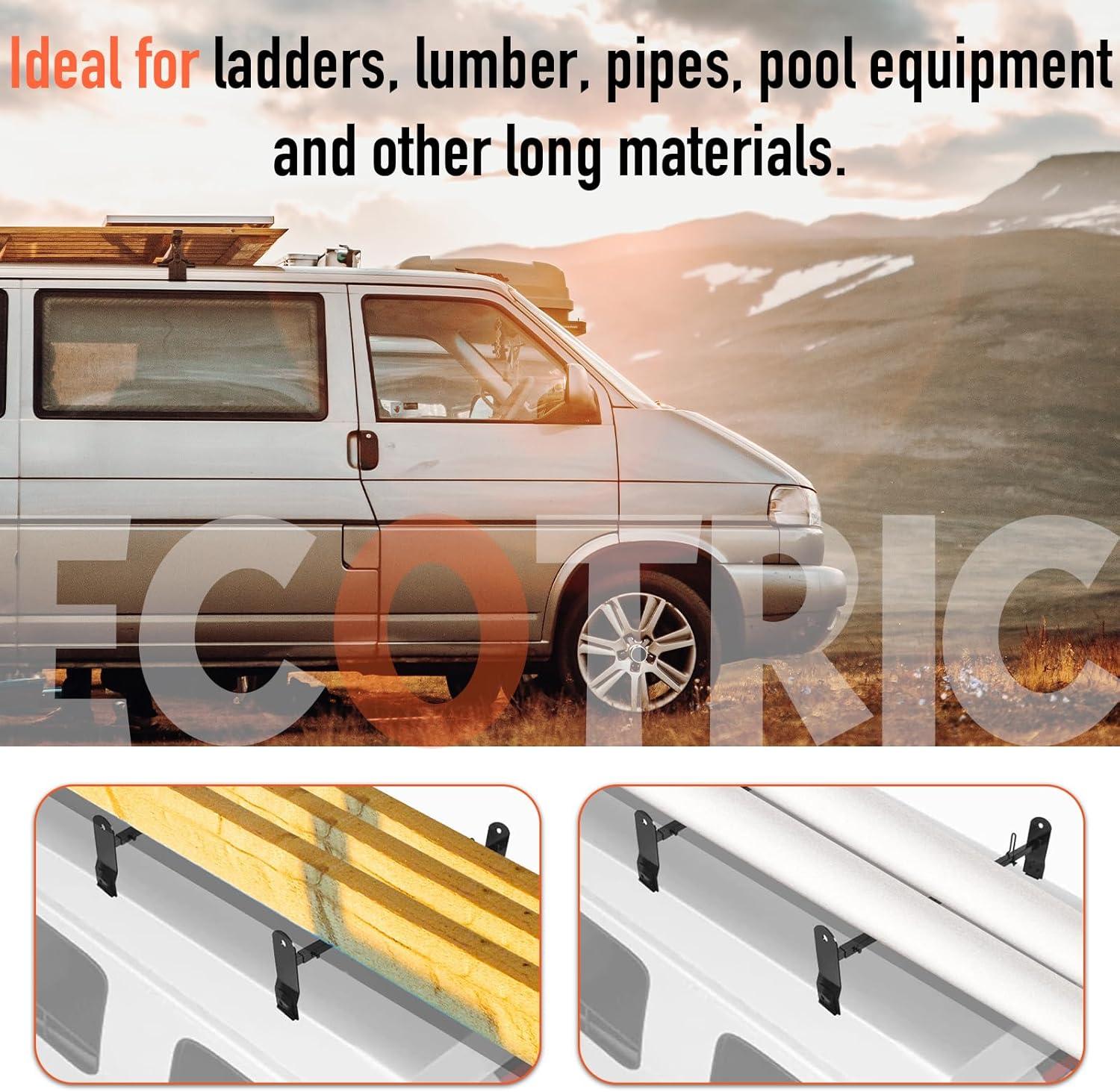 imageECOTRIC Van Roof Ladder Rack 47quot 77quot Adjustable Roof Rack 500LBS Capacity Compatible with Chevy Dodge Ford GMC Express
