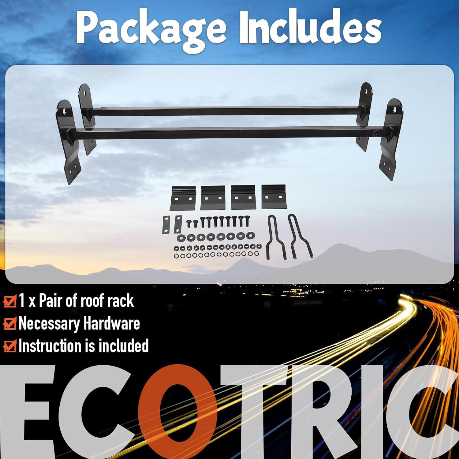 ECOTRIC Cross Bar 53″-66″ Compatible with 1999-2022 Chevy Express GMC Savana Ford E Series Ladder Rack for Van Roof Rack Ladder Carrier Steel Rain Gutter Heavy Duty Black(1 Set)