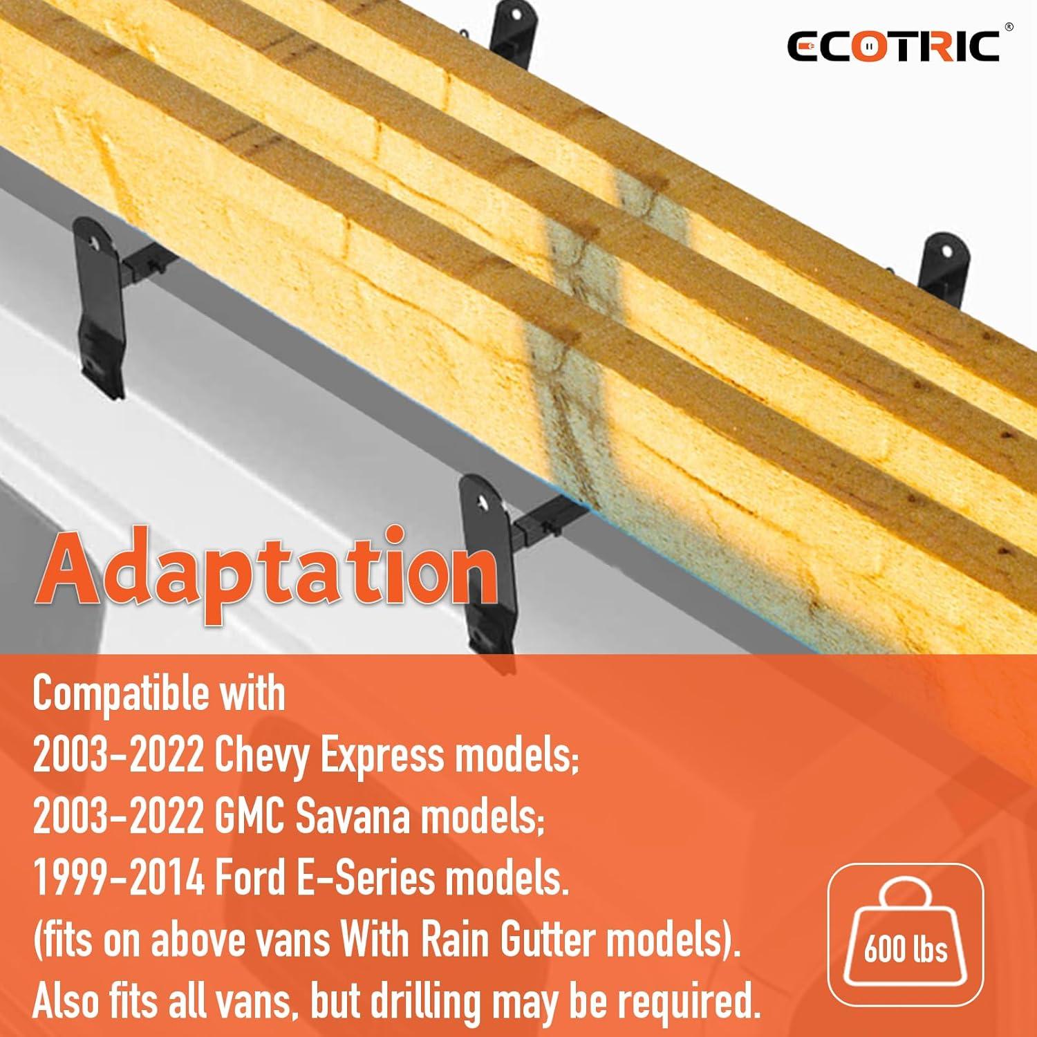 Be the first to review “ECOTRIC Cross Bar 53″-66″ Compatible with 1999-2022 Chevy Express GMC Savana Ford E Series Ladder Rack for Van Roof Rack Ladder Carrier Steel Rain Gutter Heavy Duty Black(1 Set)”
