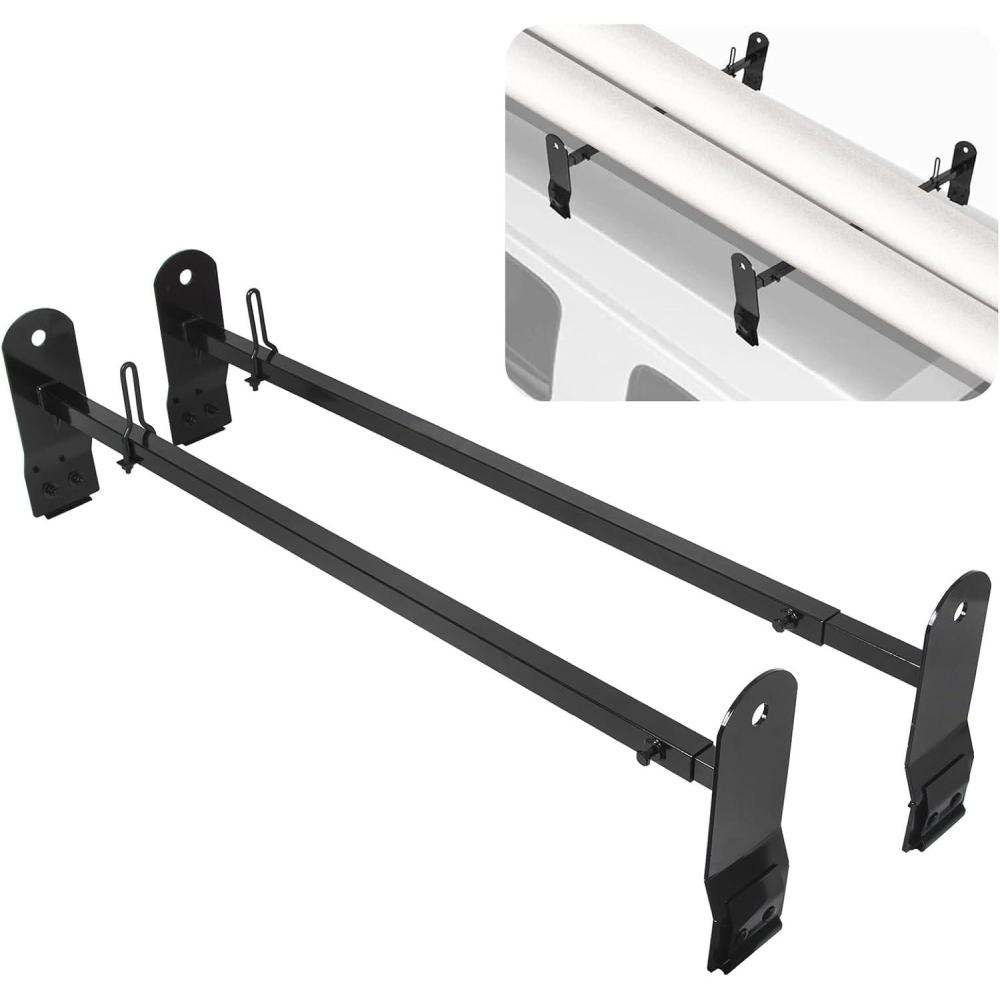 ECOTRIC Cross Bar 53"-66" Compatible with 1999-2022 Chevy Express GMC Savana Ford E Series Ladder Rack for Van Roof Rack Ladder Carrier Steel Rain Gutter Heavy Duty Black(1 Set)