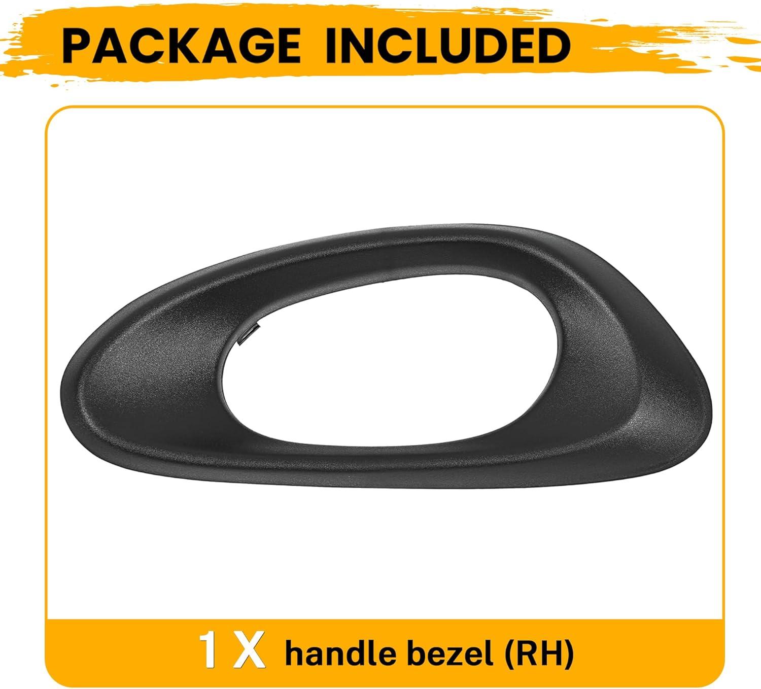Package includes two interior door handle trim bezel pieces for front passenger and driver side (door handles not included)