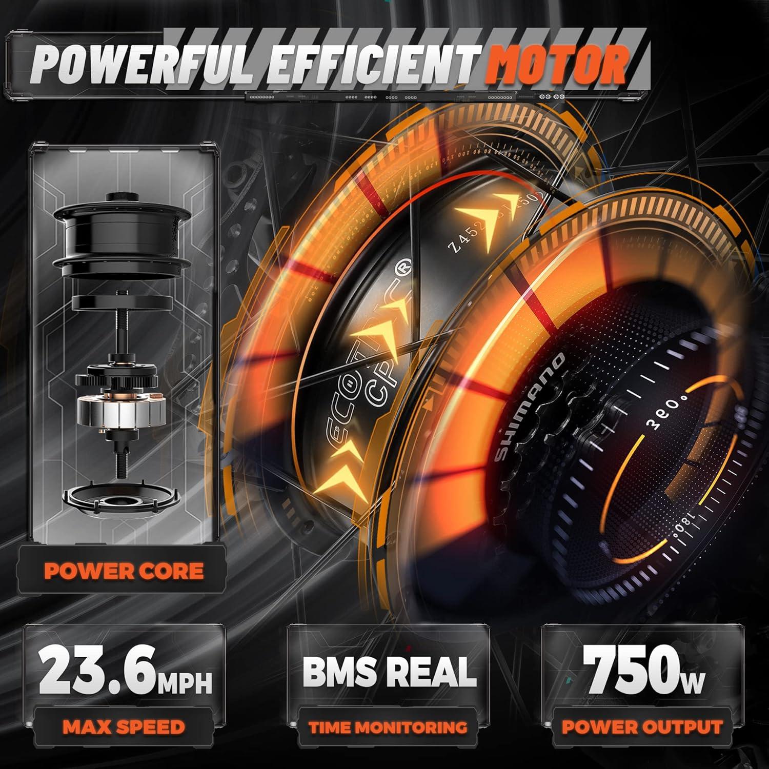 FEATURE – 750W powerful bruthless motor has less friction and lower noise, which makes this electric bike runs strongly like a tornado but without annoying noise. 48V large removable Samsung battery, waterproof and overcharge protection, high quality in heat resistance and endurance, with great performance and long battery life