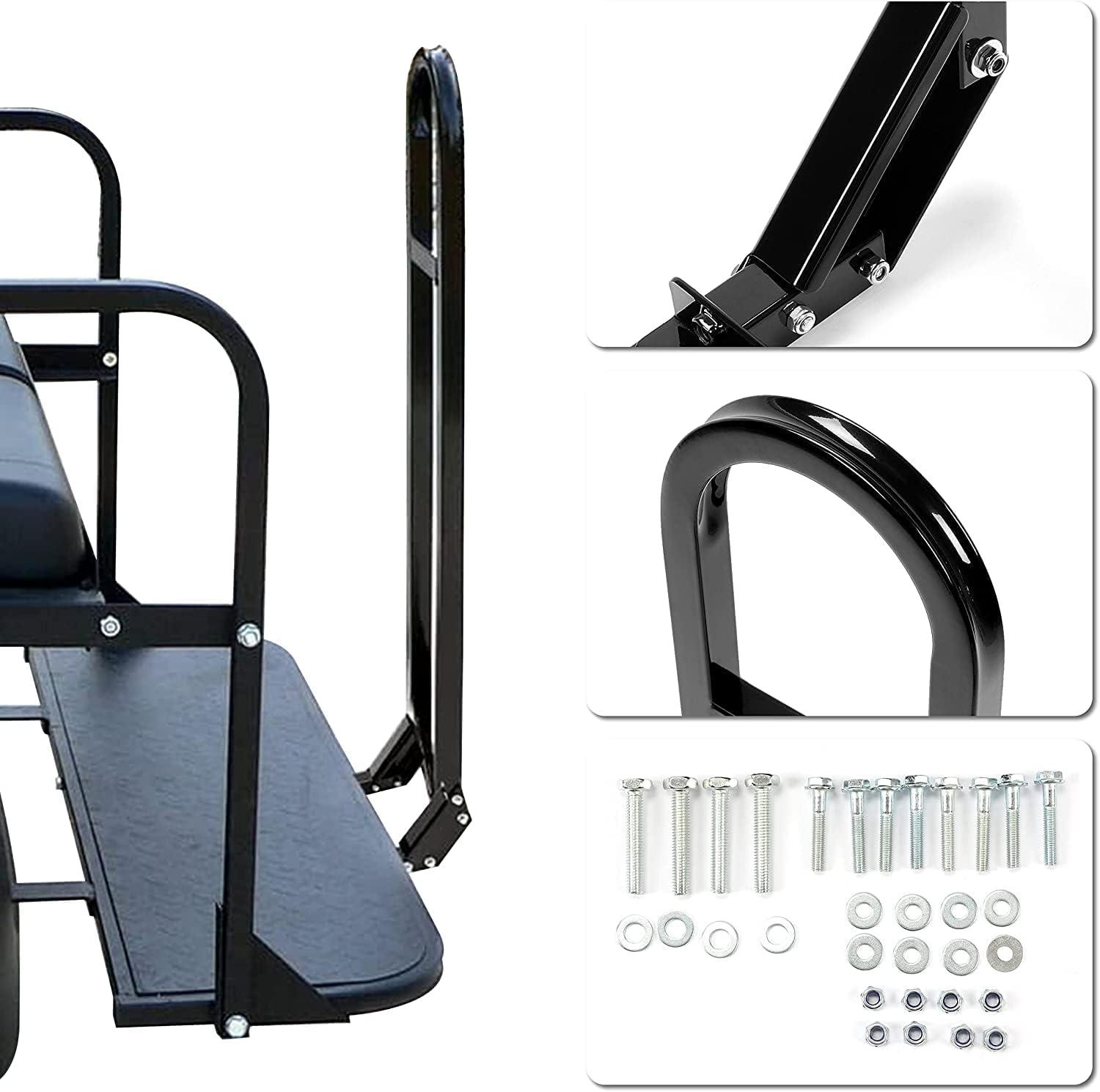 HEAVY DUTY CONSTRUCTION – Heavy Duty steel plated cargo bed with an industrial grade polished finish. Black industrial powder coating for all seat's frame. We only use NEW not recycled powder (Recycled powder is cheaper but will turn lighter after a year then fade). Come with grab bar for more safety.