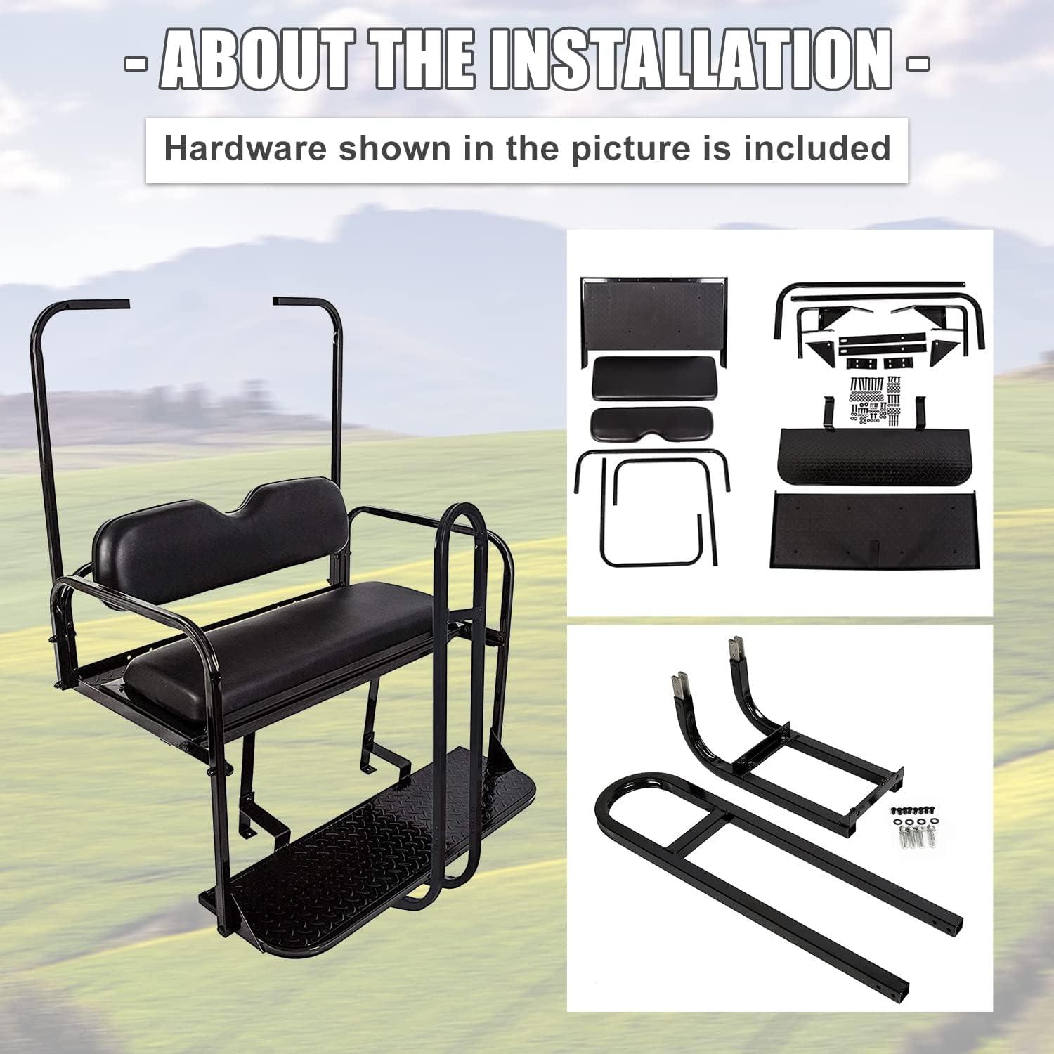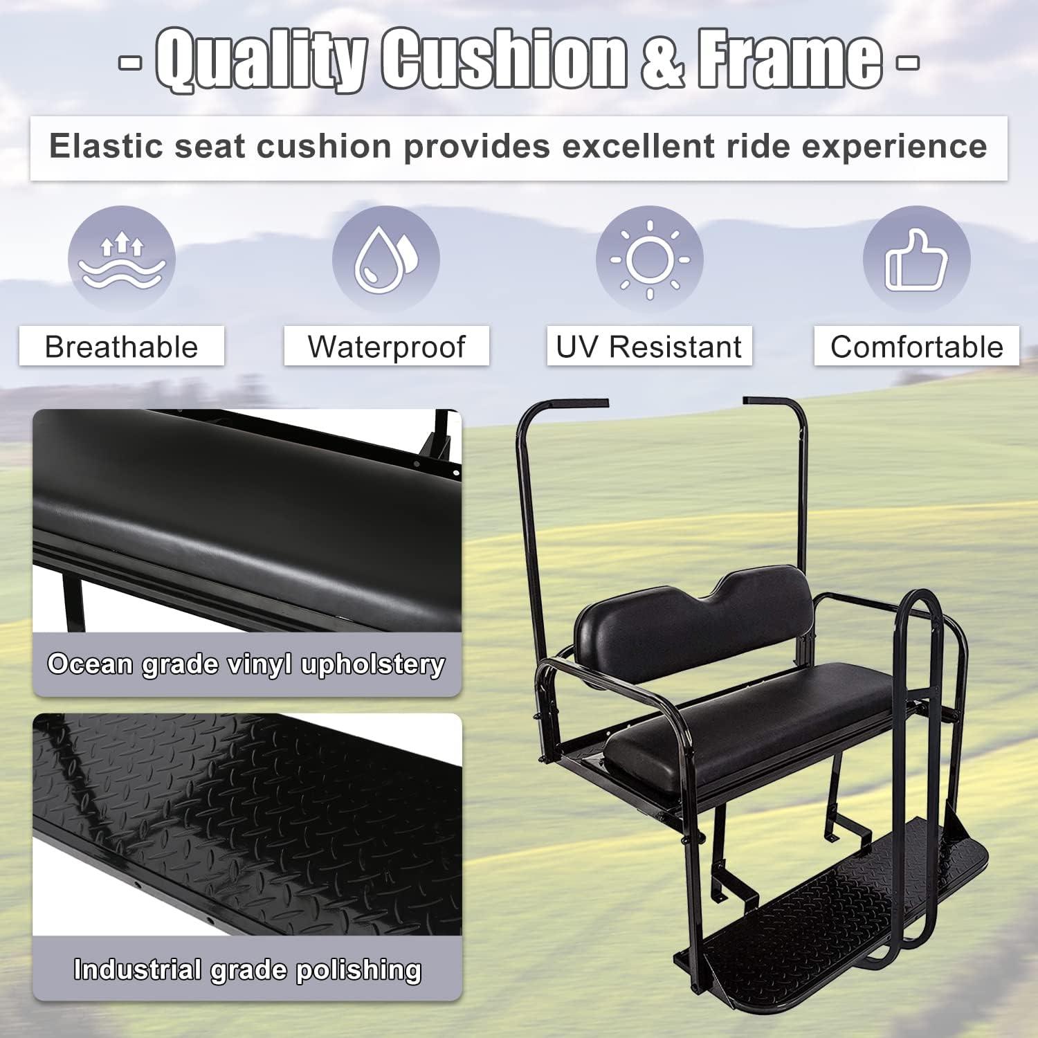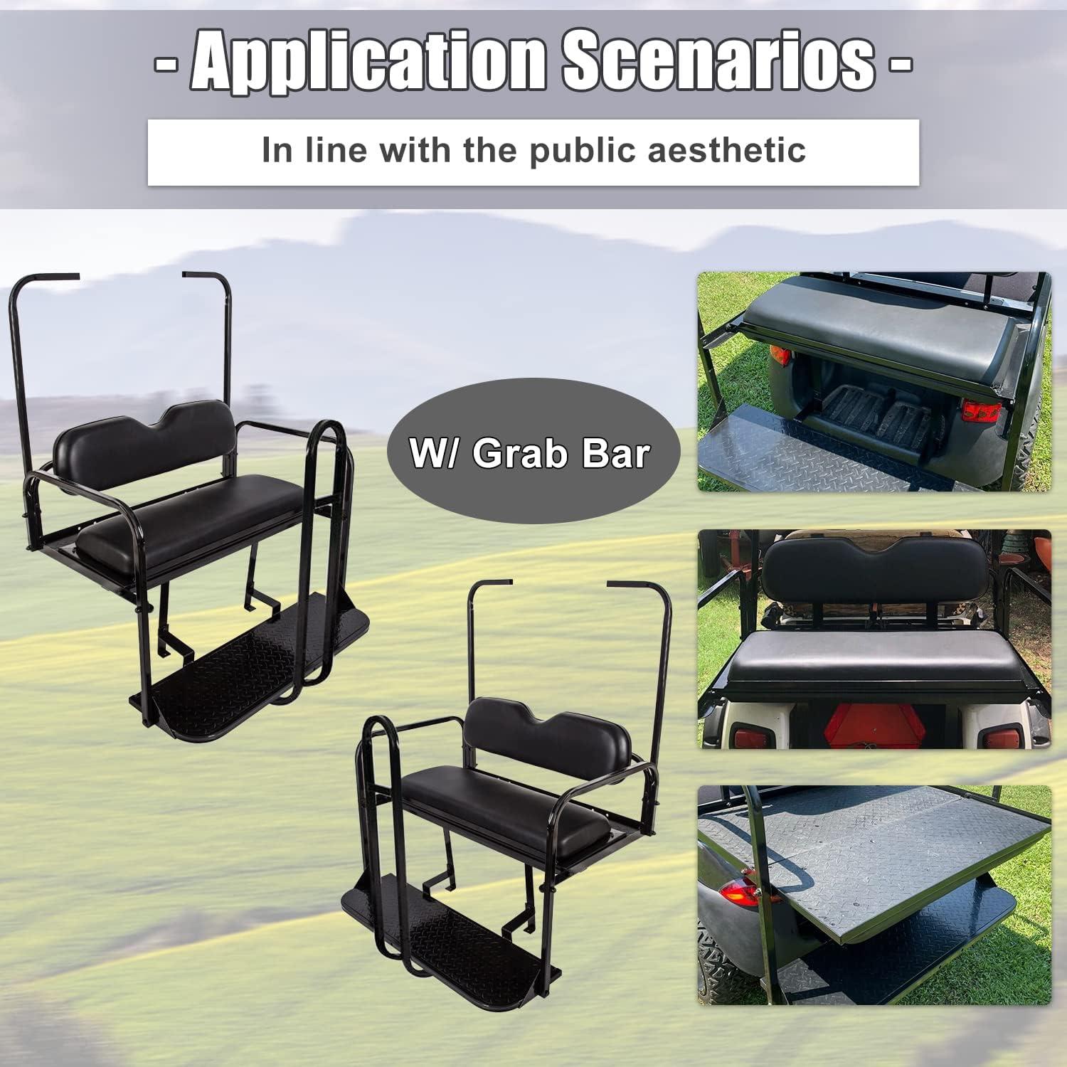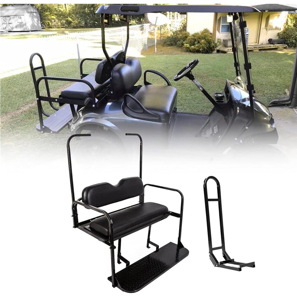 FITMENT – Fold Down Rear Black Seat Compatible with 1995 and Up EZGO TXT. Transform your golf cart with ECOTRIC's heavy duty back seat kit – good for carrying passengers or cargo.