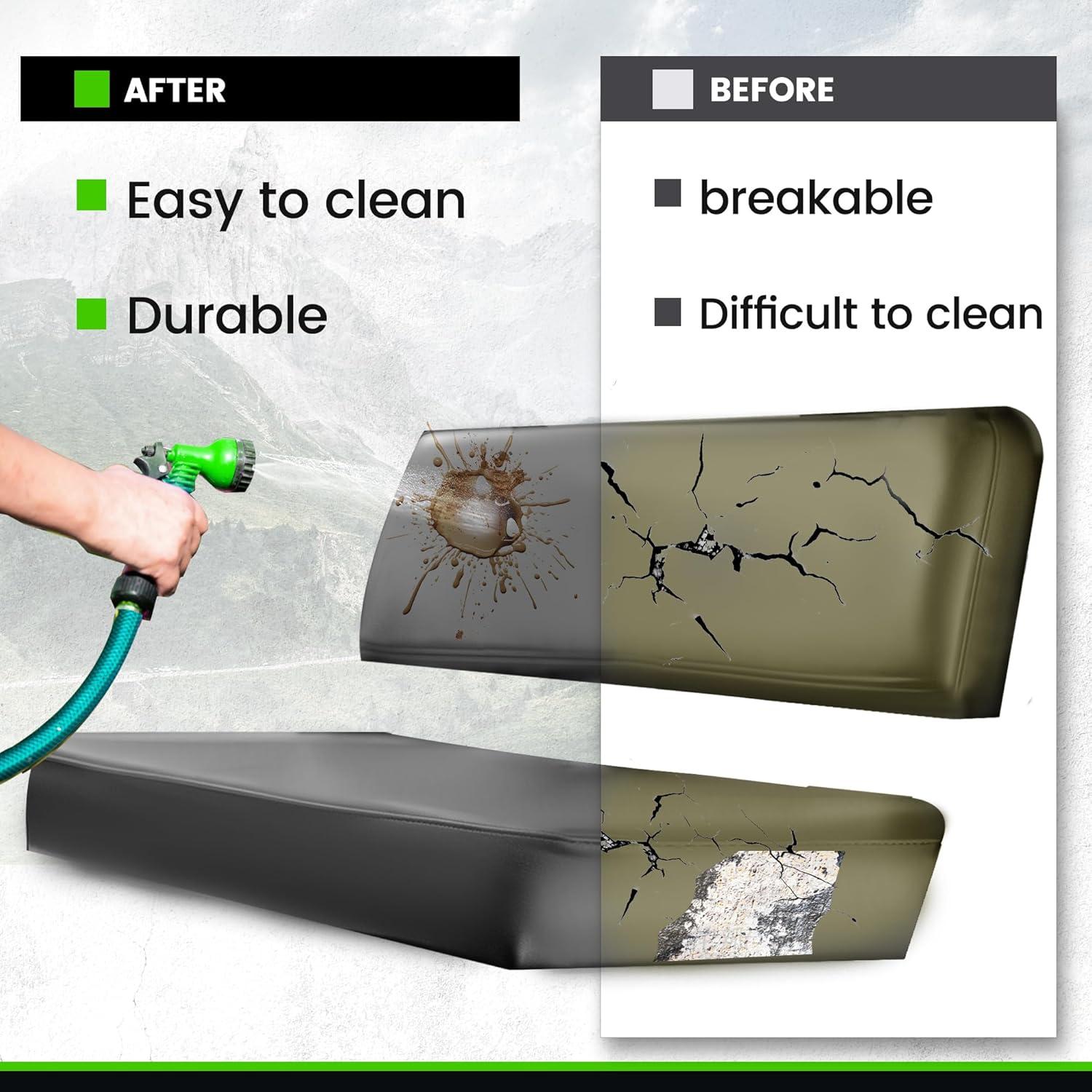 Our covers are made to be stapled on, making installation easy and neat. Made from Vinyl material, which is waterproof, scratch-resistant and durable. Protects new seats and renews the look of old seats while shielding against dirt, mud and weather damage.