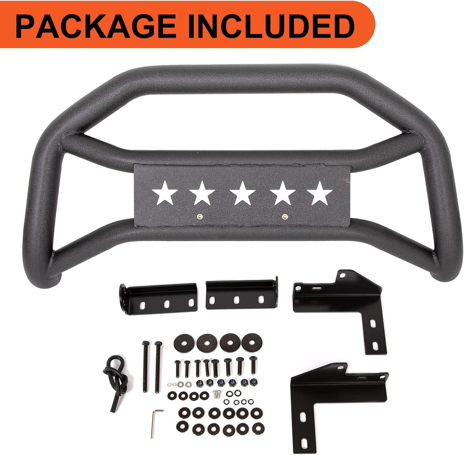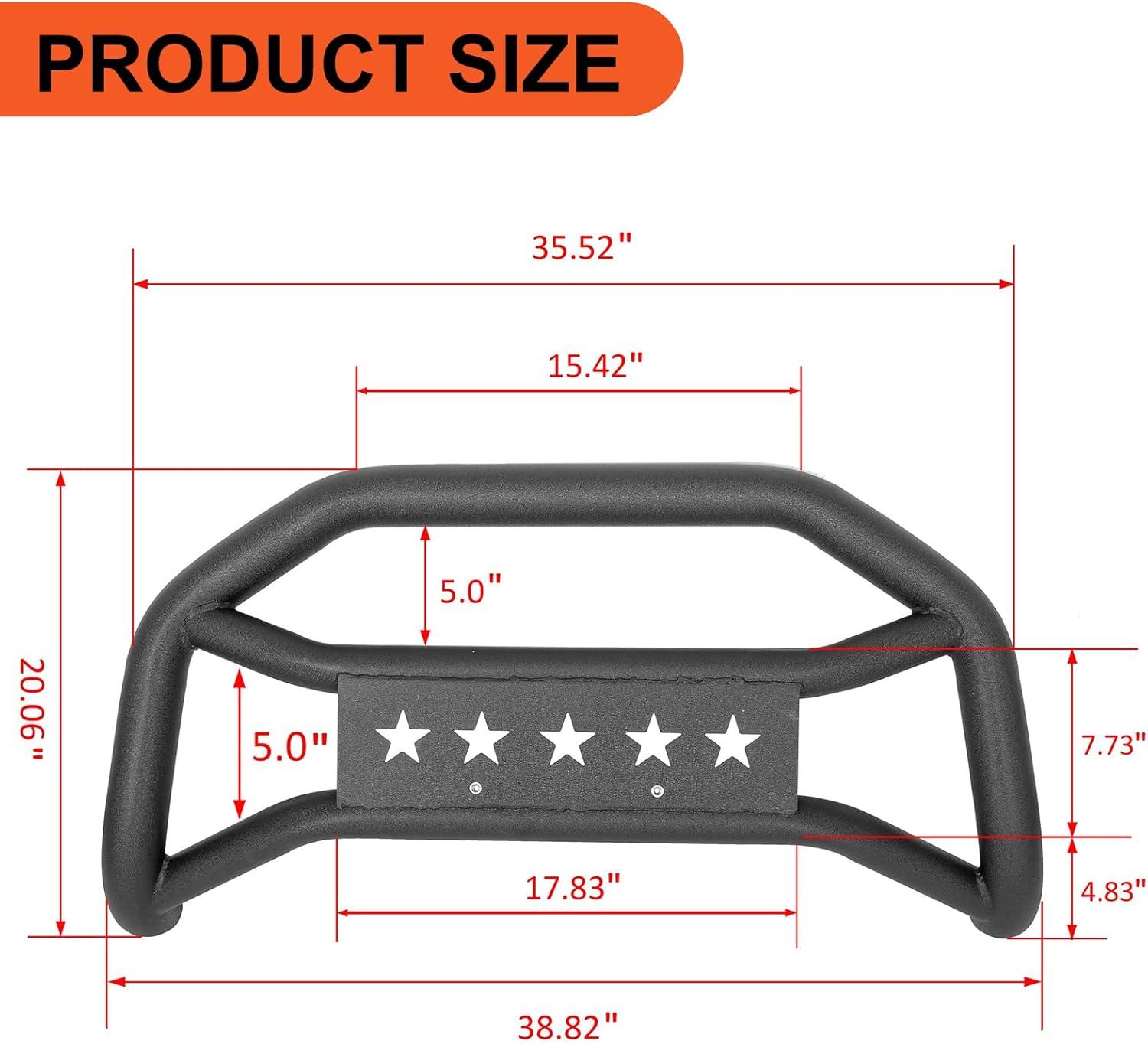 Heavy-duty Material: ECOTRIC Bumper Guard Bull Bar is made of heavy duty steel. Electrophoretic black primer combined with black powder topcoat for extreme protection, protect against rain, mud, dirt or any other outside elements.