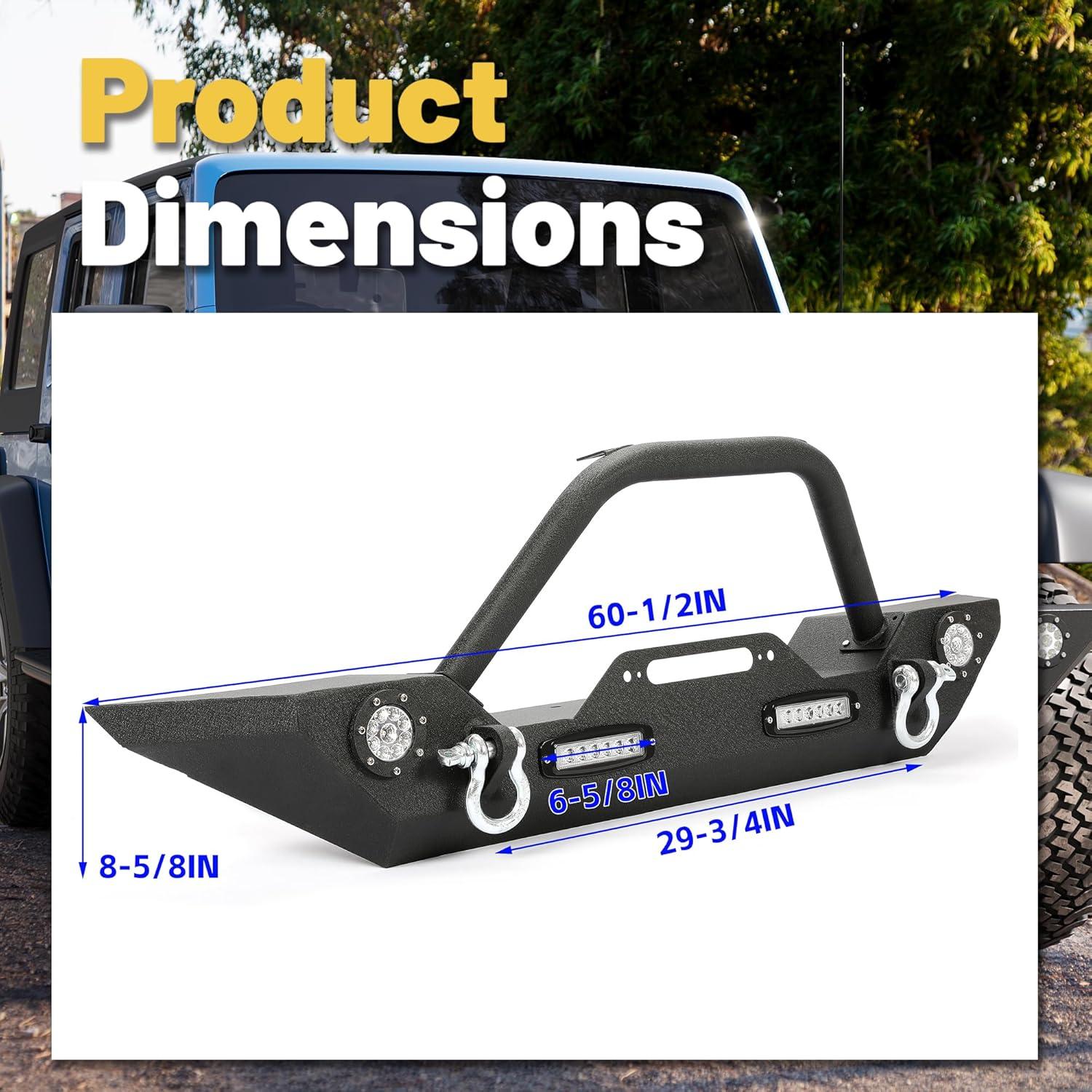 ‎ECOTRIC Front Bumper Compatible with 2007-2025 Wrangler Unlimited JL/JLU & Gladiator JT, 2007-2018 JK Front Bumper Rock Crawler Winch Plate W/Winch Plate & 2 18W LED Lights D-rings(Style1)