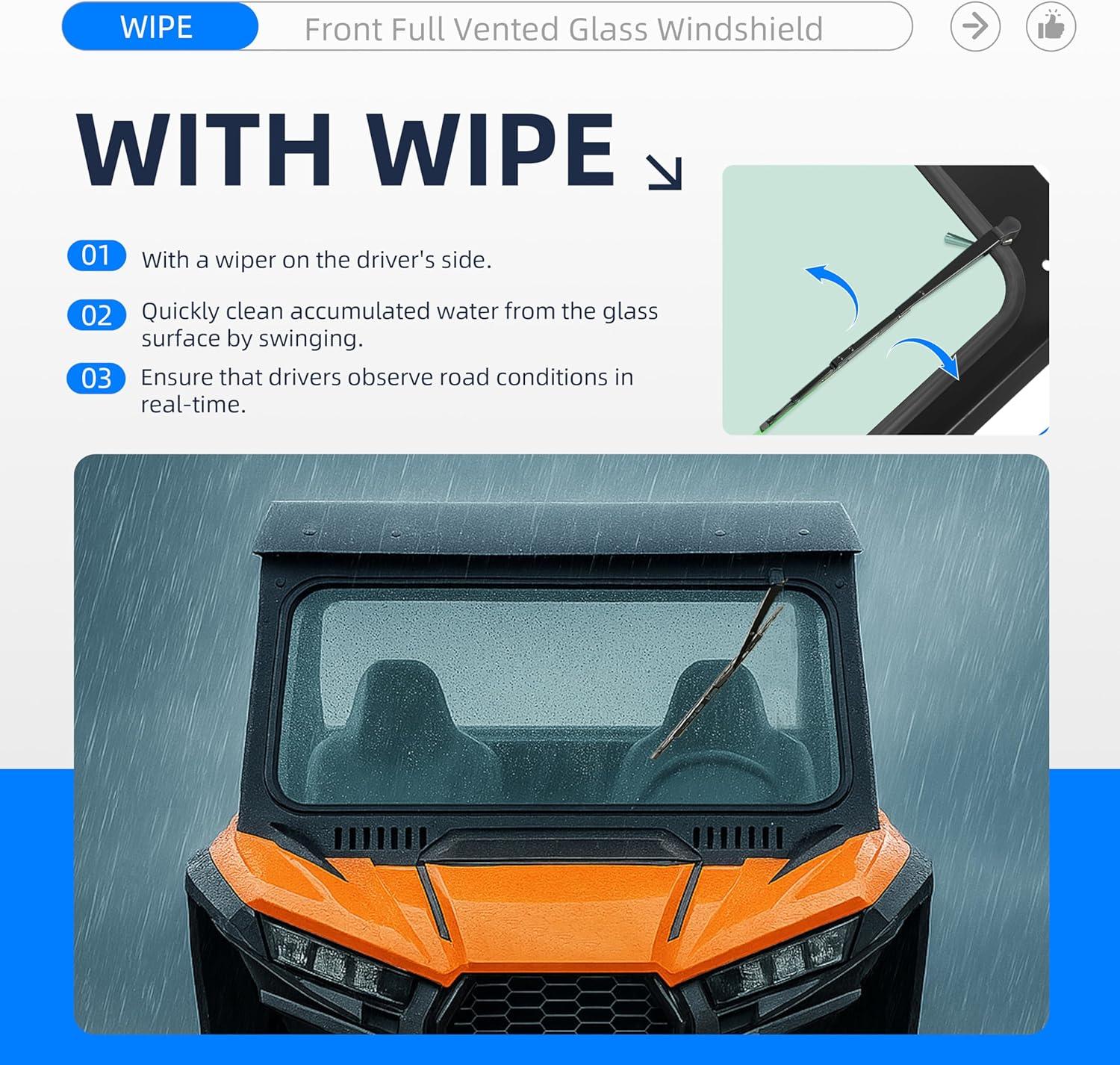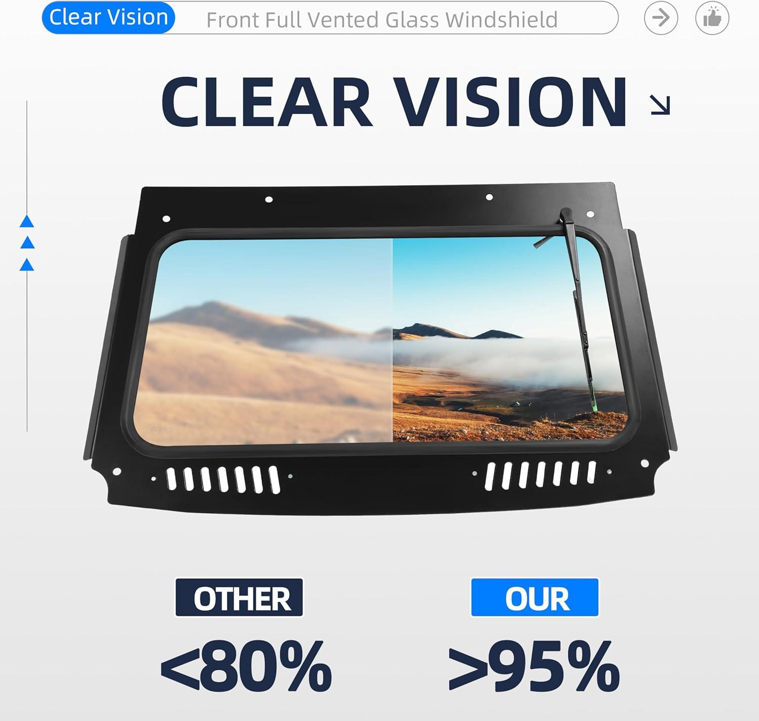 All Weather Protection: On rainy or snowy days, the front windshield can avoid rainwater and snow from directly entering the vehicle. In winter, it can also block some cold air, reducing the loss of heat inside the vehicle. The ventilation holes can be opened or closed flexibly. When opened, they allow the air inside the UTV to circulate, enhancing the enjoyment of driving and riding