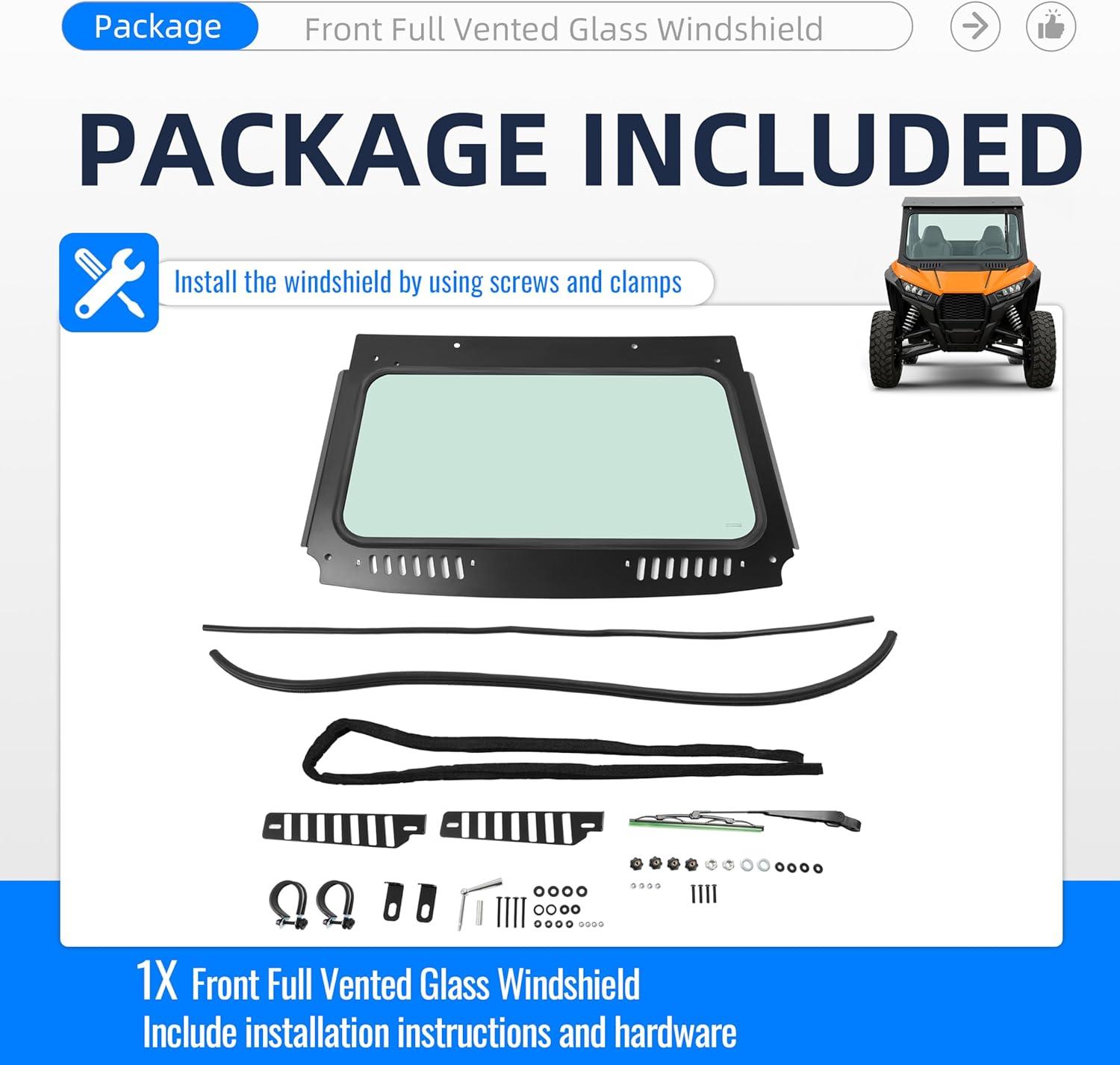 Package & Installation: 1 x front windshield with installation accessories, no installation instructions. Just install with screws