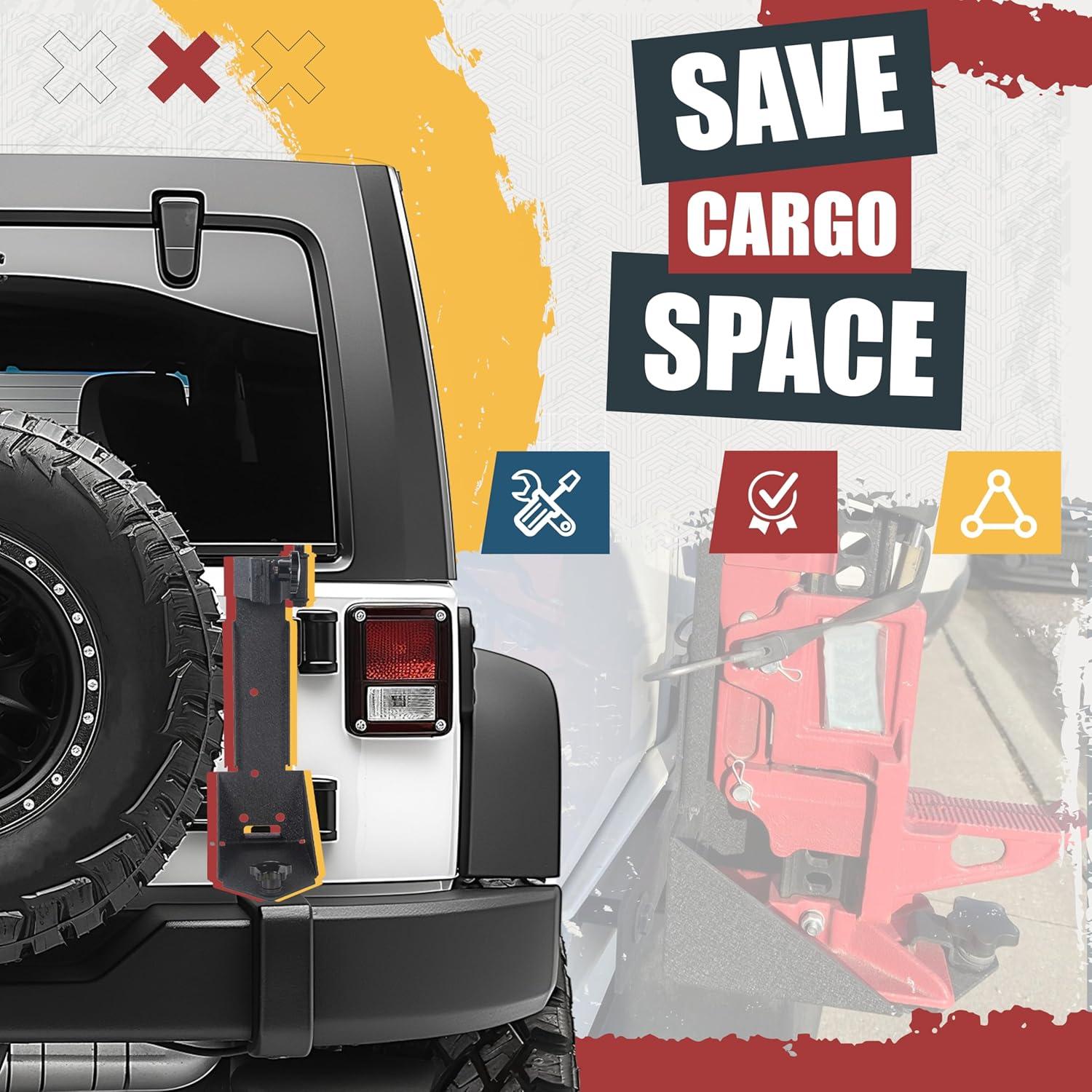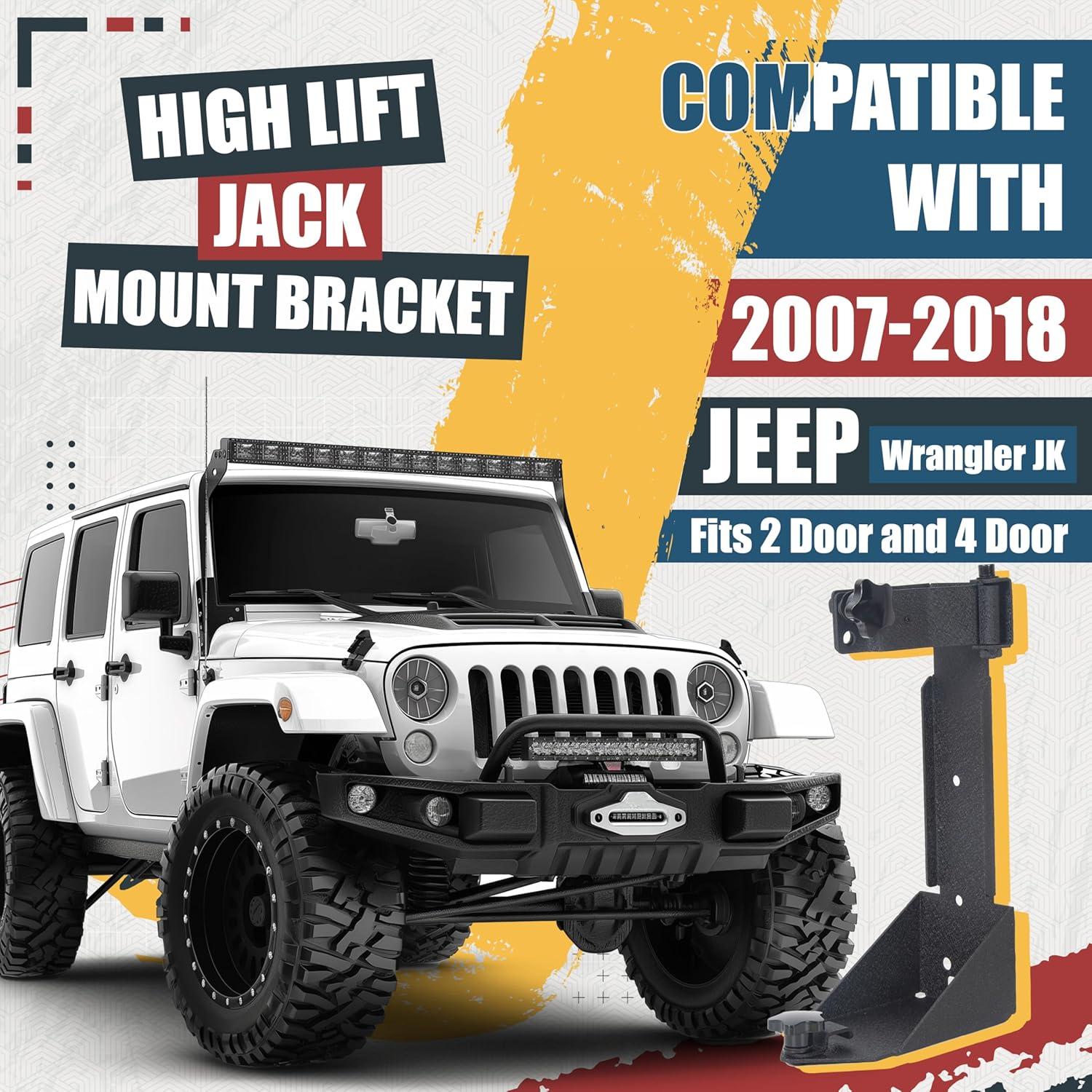 Fitment: Compatible with 2007 2008 2009 2010 2011 2012 2013 2014 2015 2016 2017 2018 Jeep Wrangler JK (Fits 2 Door and 4 Door); Fits most off-road style jacks . Jack not included; This off-road jack mount bracket attaches to the tailgate hinges; Please verify that this part fits your vehicle before you purchase