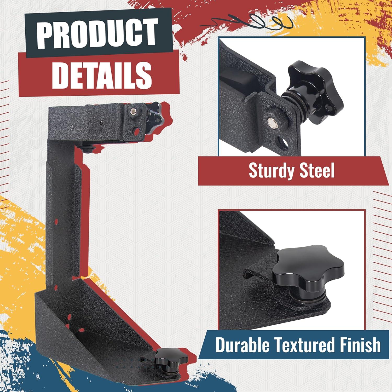 Improve durability: Made of high-strength steel, it can withstand the challenges of vehicle vibration, collision and bad weather, and the bracket is protected by black powder coating, so there is no need to worry about wear or damage
