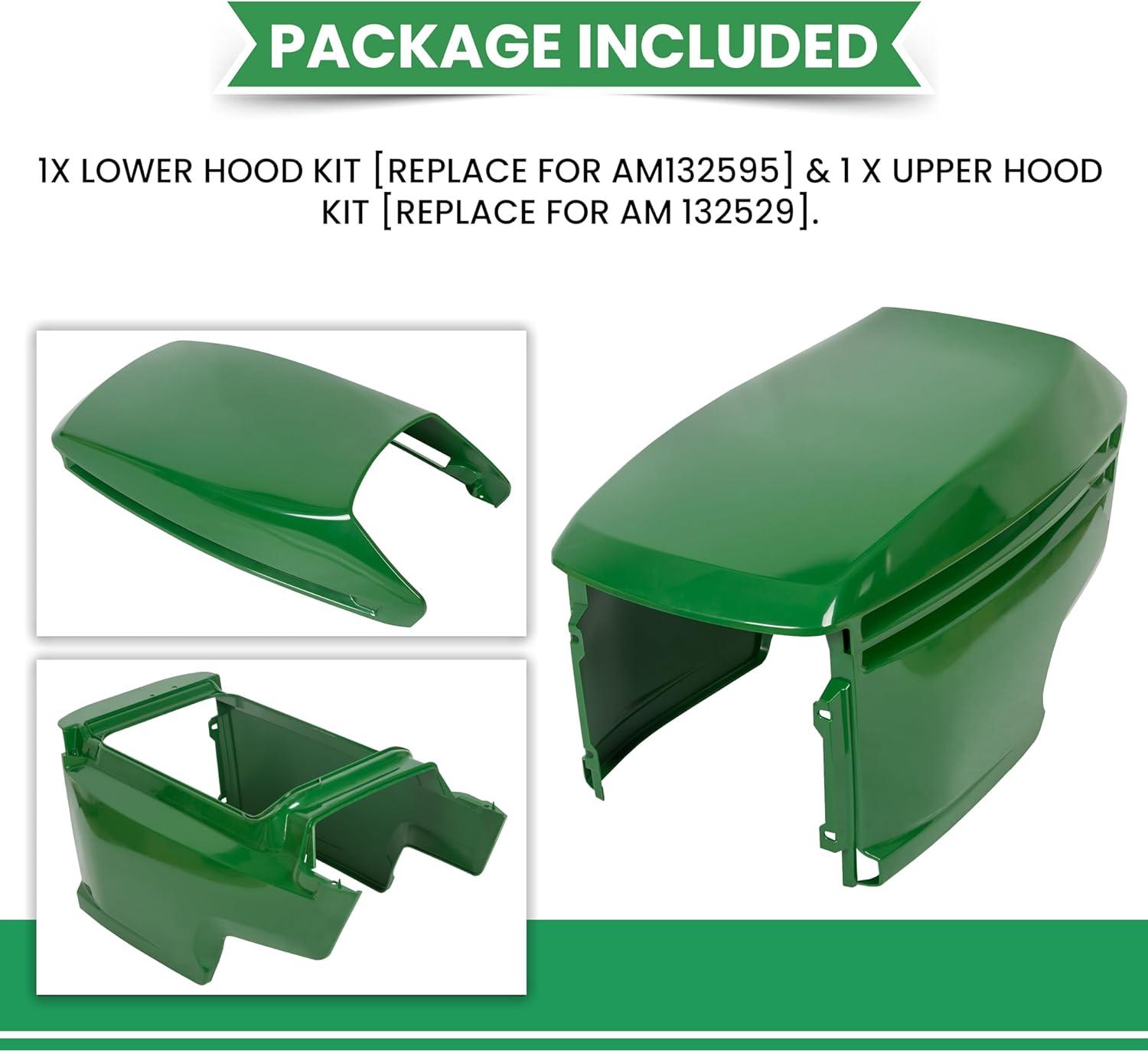 ECOTRIC Lower&Upper Hood Compatible with John Deere Models LX255 LX266 LX277 LX279 LX280 LX288 LX289, 325 335 345 355D, GT225 235 235E 245, GX255 325 335 345 355 Replace for AM132595 AM132529(Lower Hood)