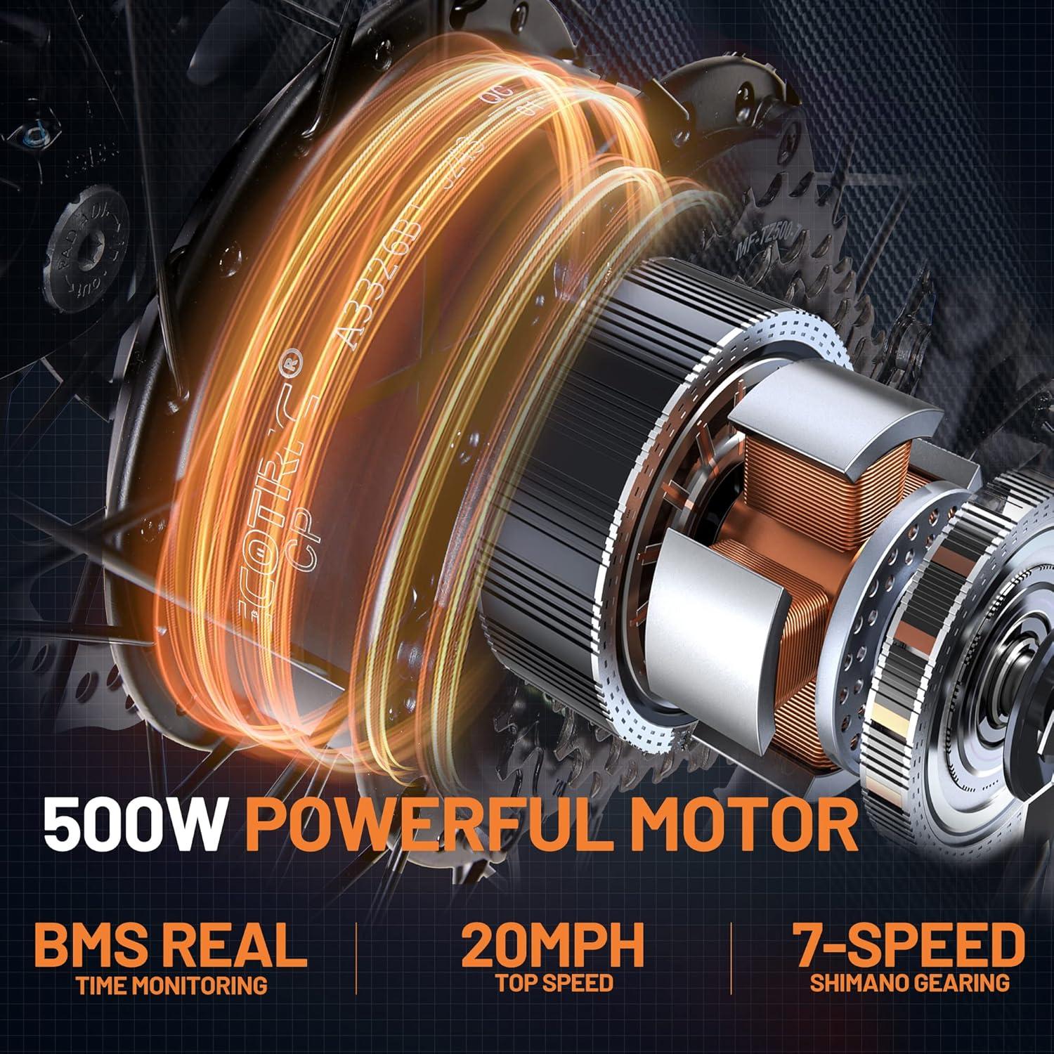 imageECOTRIC Mountain Electric Bike Adults 26 E Bike 500W Powerful Motor 36V125Ah Removable Lithium Battery City Commuter ebikes Suspension Fork Shimano 7Speed