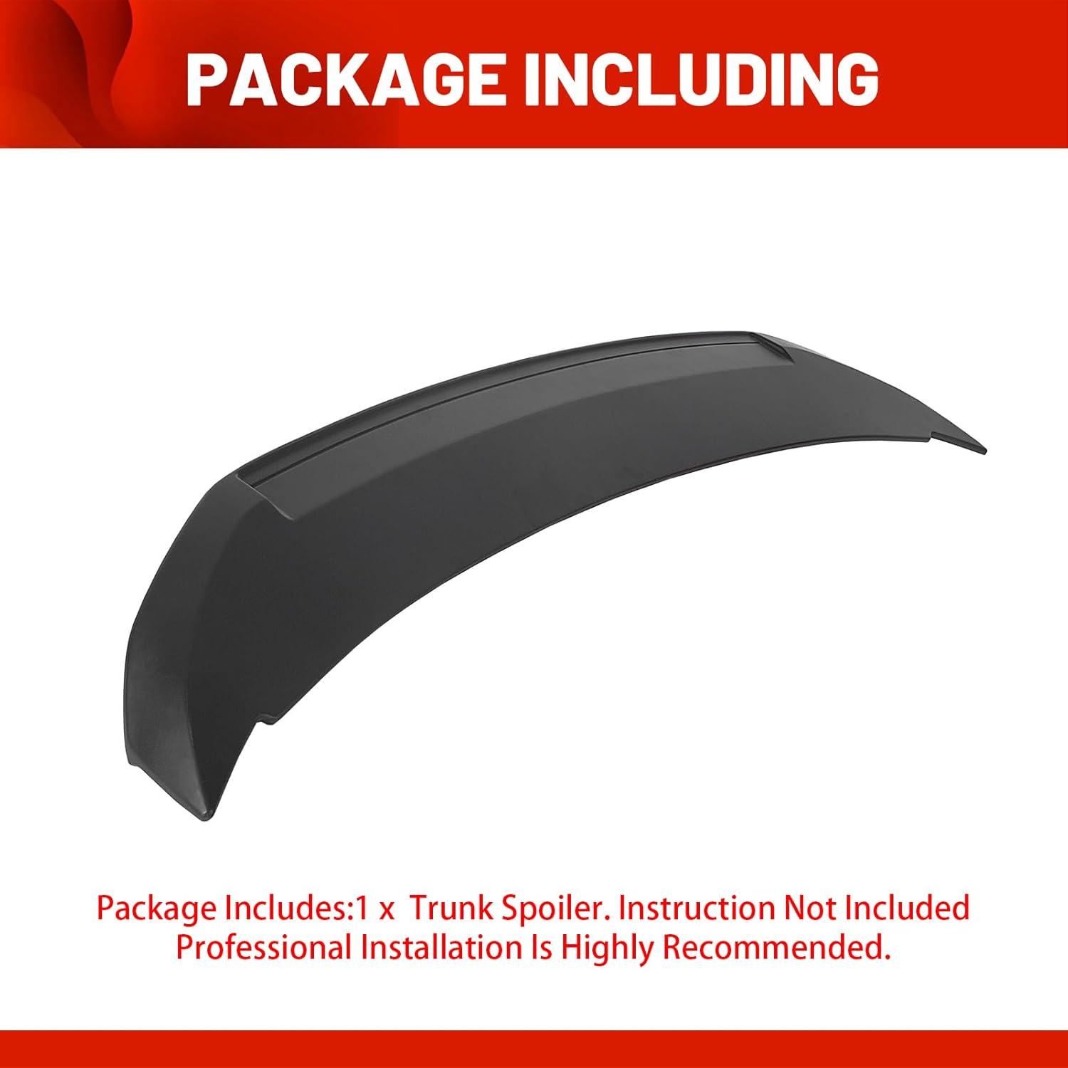 Package Includes: 1 x unpainted Trunk Spoiler. Instruction Not Included, Professional Installation Is Highly Recommended.