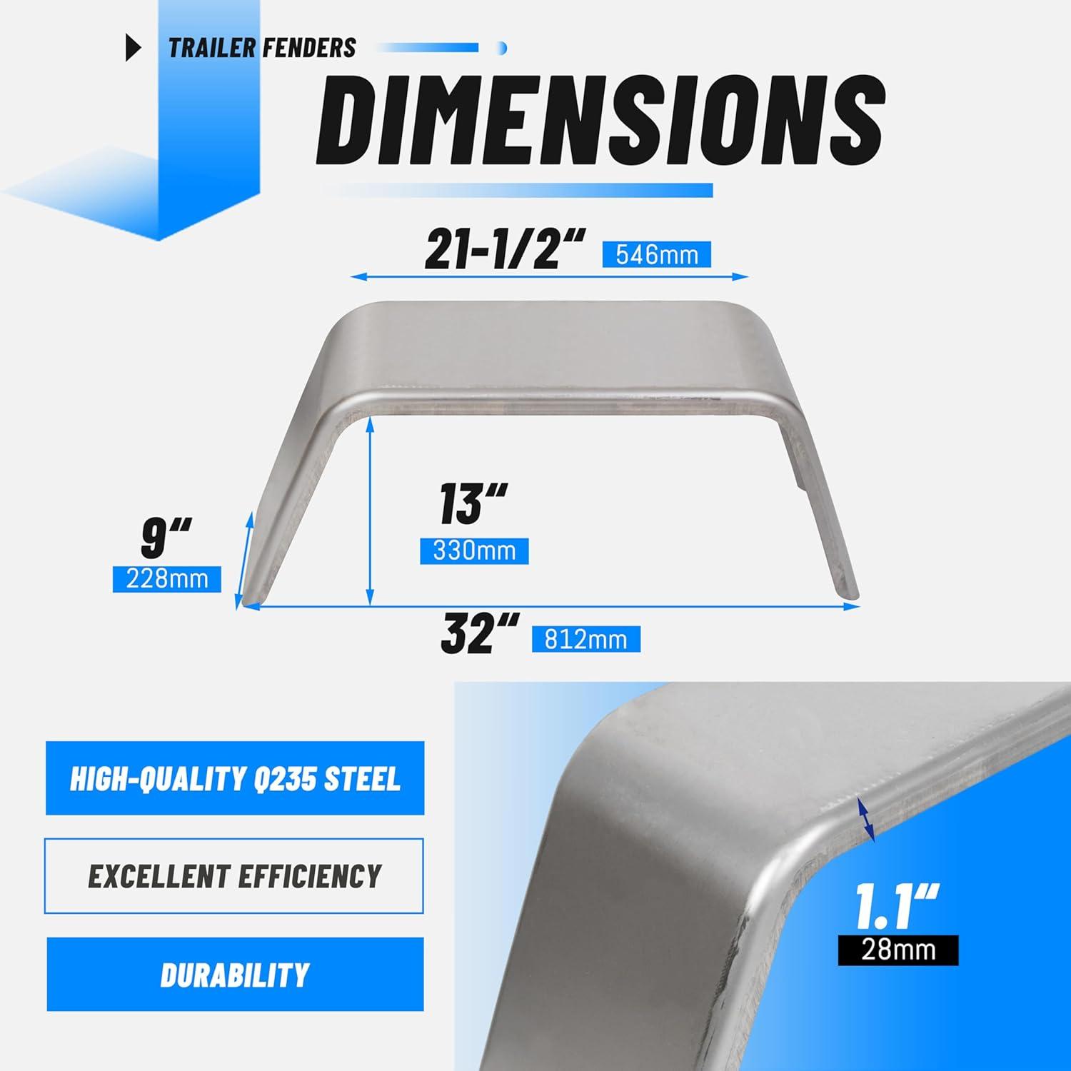Upgraded Protection : The trailer fenders protect the wheels and partially exposed body from collisions and scratches, and can be easily and firmly fixed to the trailer frame or bracket.
