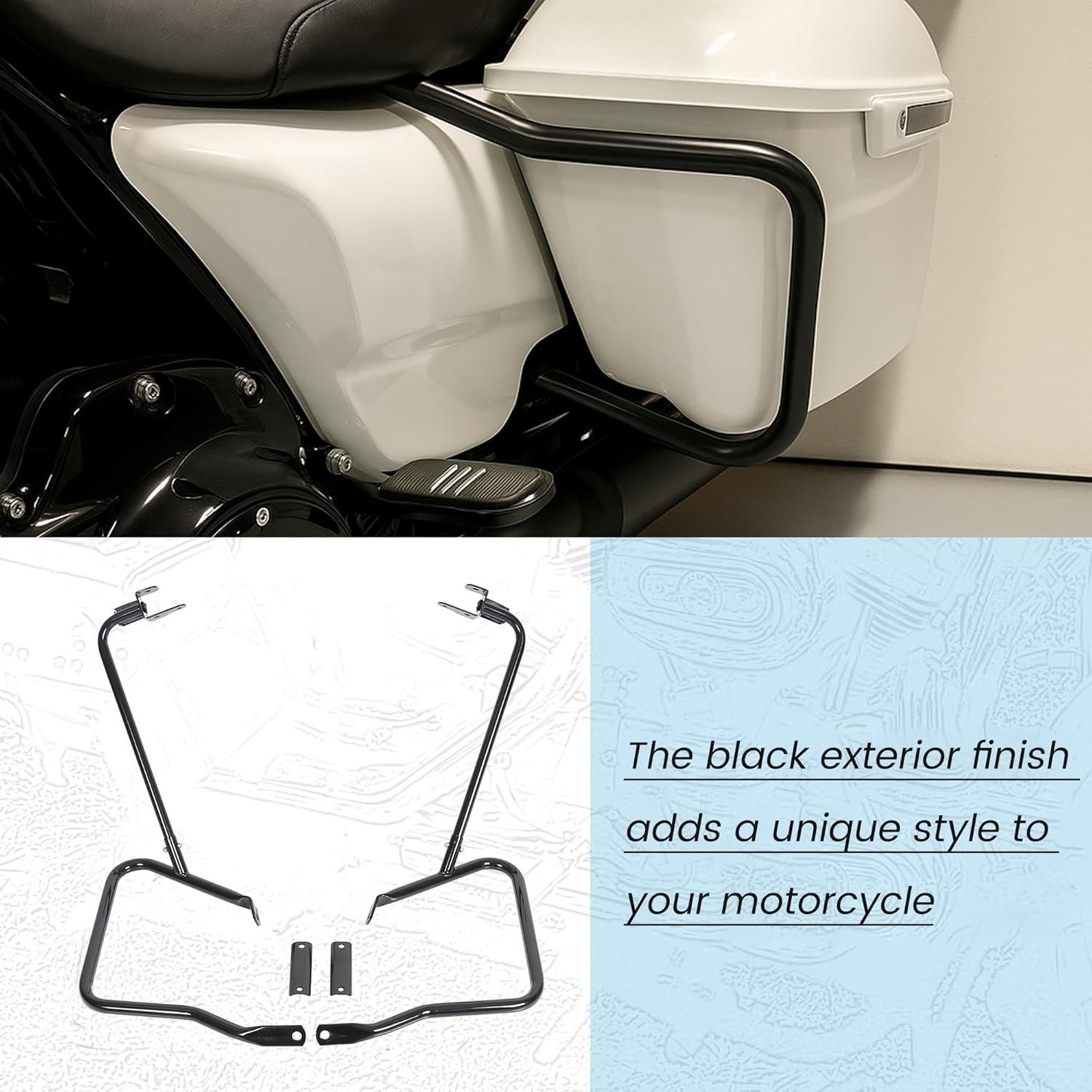 ECOTRIC Saddlebag Bracket Guard Bars Compatible with 2014-2024 Harley Davidson Touring Street Road Glide FLH Saddle Bags Guard Mount Black(Black)