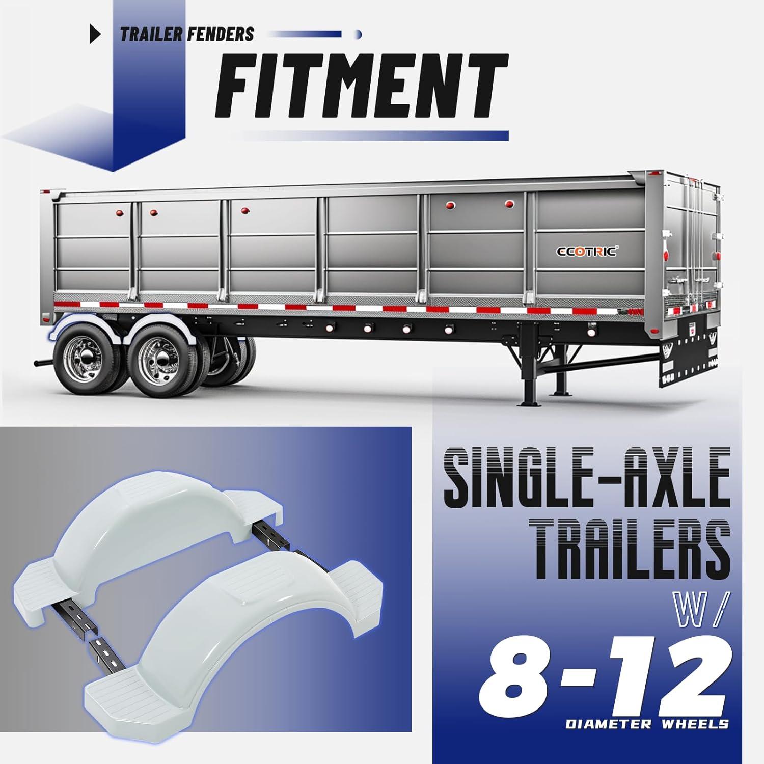 Fits single-axle trailers w/ 13″ diameter wheels. Please check your wheel size before purchasing.