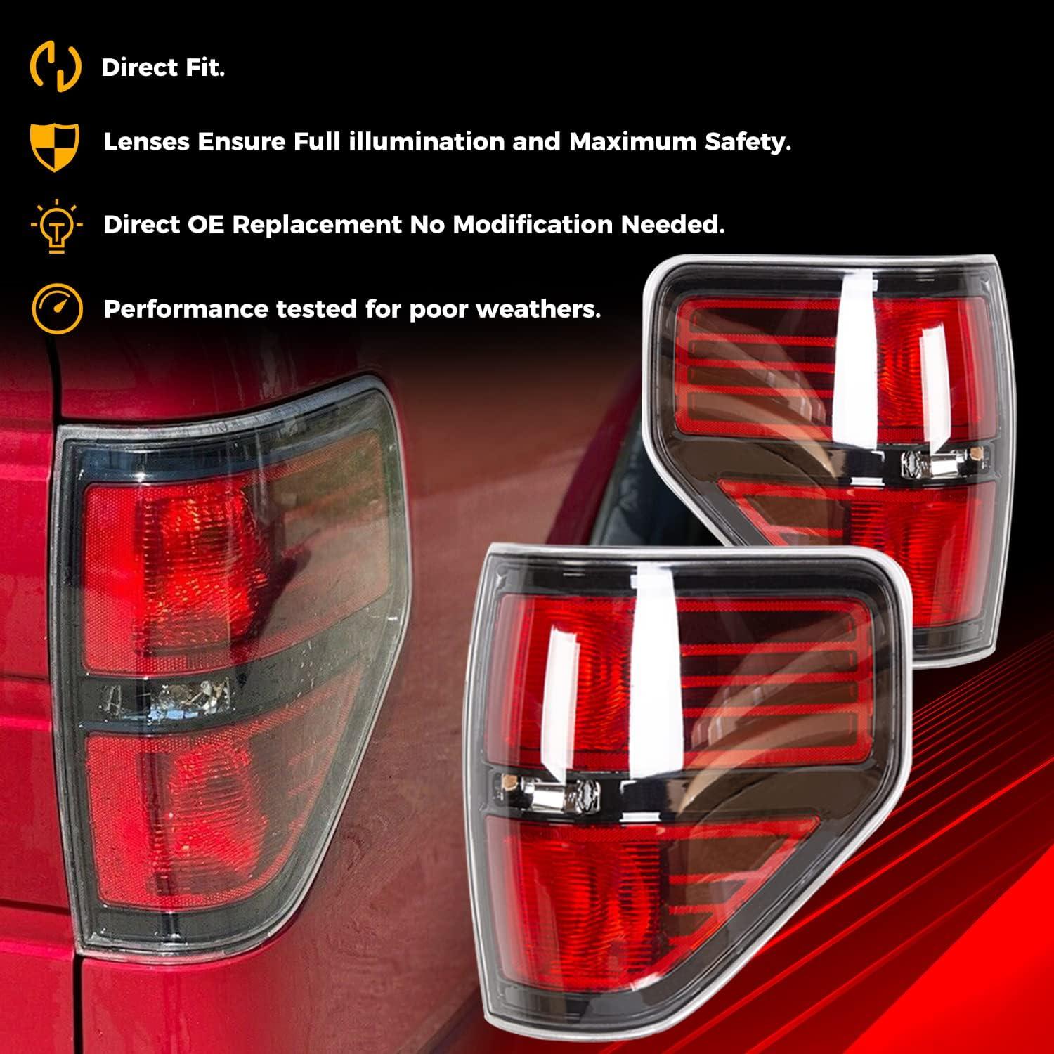 ECOTRIC Tail Light Compatible with 2009-2014 Ford F150 F-150 Pickup Styleside Rear Brake Lamp Left & Right Side w/Black Trim Red Lens Housing Replacement for FO2818143 FO2819143 (Without Bulbs)