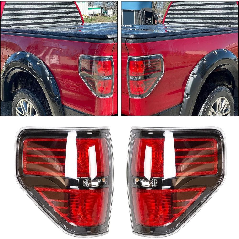 imageECOTRIC Tail Light Compatible with 20092014 Ford F150 F150 Pickup Styleside Rear Brake Lamp Left ampamp Right Side wBlack Trim Red Lens Housing Replacement for FO2818143 FO2819143 Without Bulbs