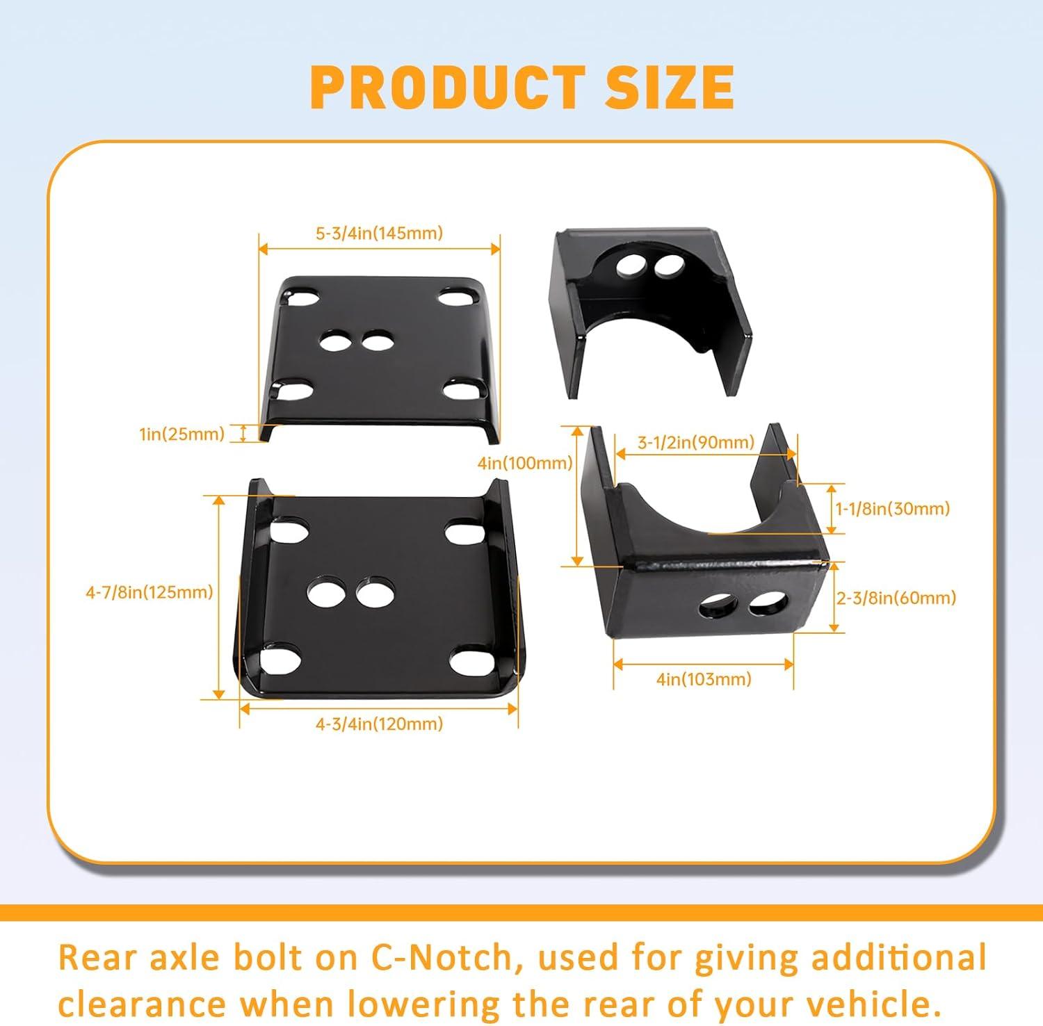 NOTE: Achieves 5″ rear drop. Placement on Vehicle: Rear.