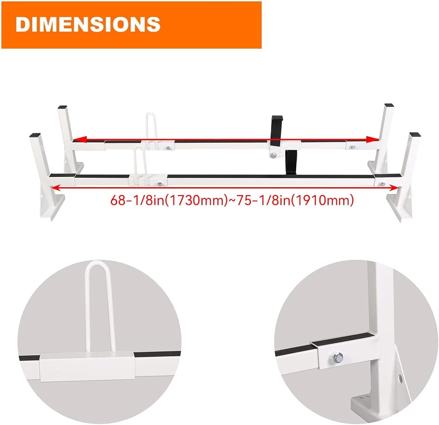 SPECIFICATION- Color: White. Material: Steel. 750LBS Capacity. Additional Cross Members can be added for longer material and ladders