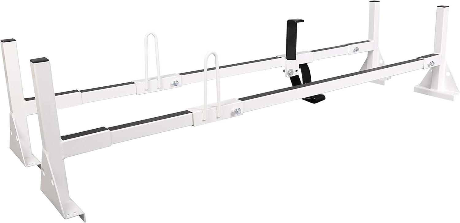 DESCRIPTION- Steel Ladder Rack Cross Bar When a full size van requires a cross member, attaches easily to provide needed extra support. With cross members made of 14-gauge steel tubing, the steel All-Purpose Rack for full size vans provides heavy duty support. The mounting base is extra-wide 12-gauge steel for superior attachment strength to the gutter