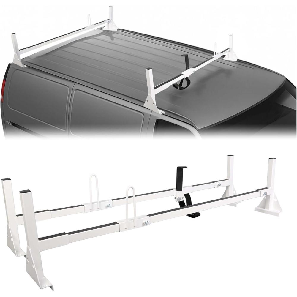 FITMENT- 3-cross member ladder racks for Full-Size vans: The 3 bars roof ladder rack fits vans with rain gutters including Chevy Express, GMC Savana, and Ford E-series