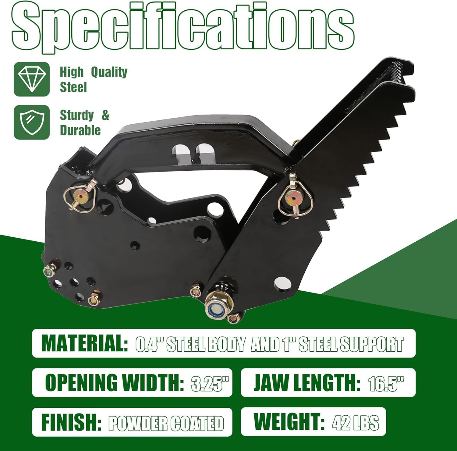 Fitment: This Backhoe Thumb Excavator Attachment is universal design for claw tractor models, fit for backhoes with up to 3.25″ boom width. Compatible with Kubota BH75, BX25, BX24, BX23, BX22, BT601, BT751, Woods BH6000 Groundbreaker Backhoe, Mahindra 1710 Backhoe and so on
