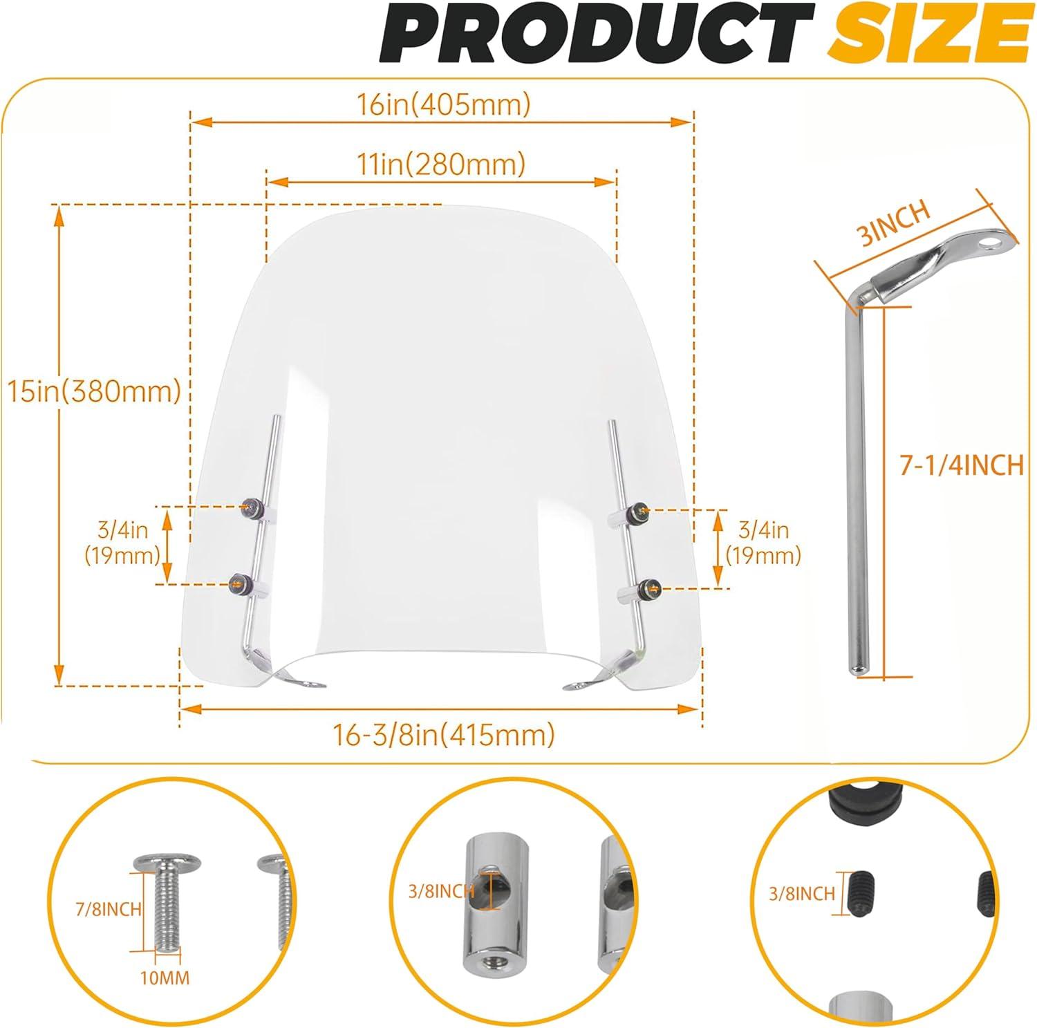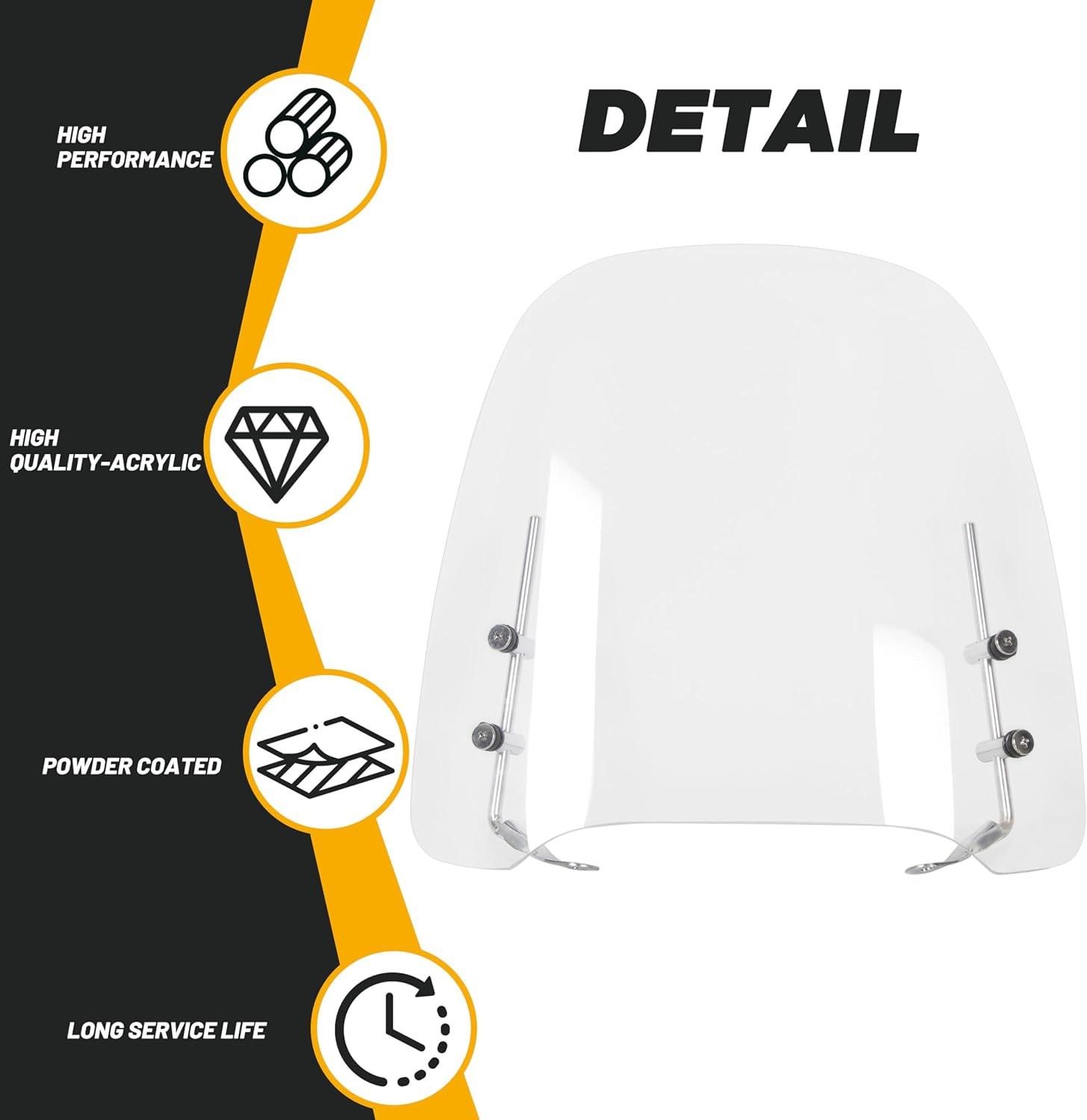Product Compatibility: The windshield is universal fits for most of motorcycle models with 6mm thread.Compatible with 125CC 150CC SCOOTERS, MOPEDS, MOTORCYCLES.