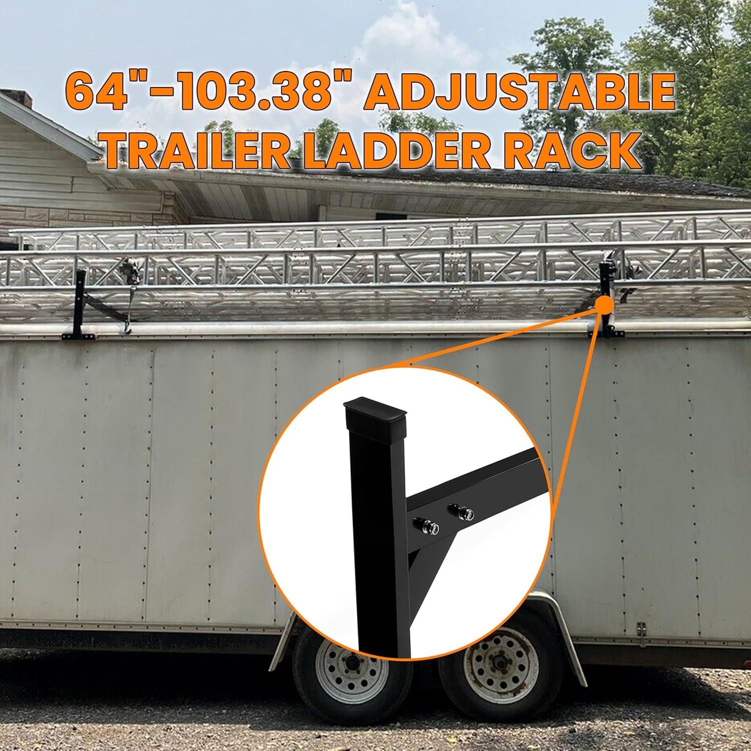 Kojem 64"-103.38" Adjustable Trailer Ladder Rack Compatible with Enclosed Trailers and Open Trailers Aluminum Powder Coated Black (5.3'-8.6')(Black)