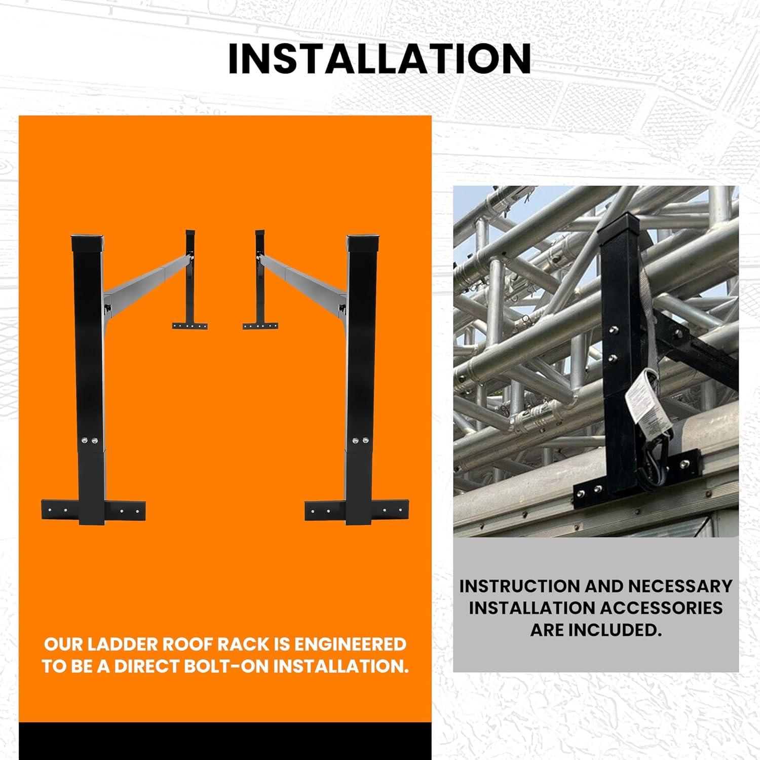 Installation: Our ladder roof rack is engineered to be a direct bolt-on installation. Instruction and necessary installation accessories are included