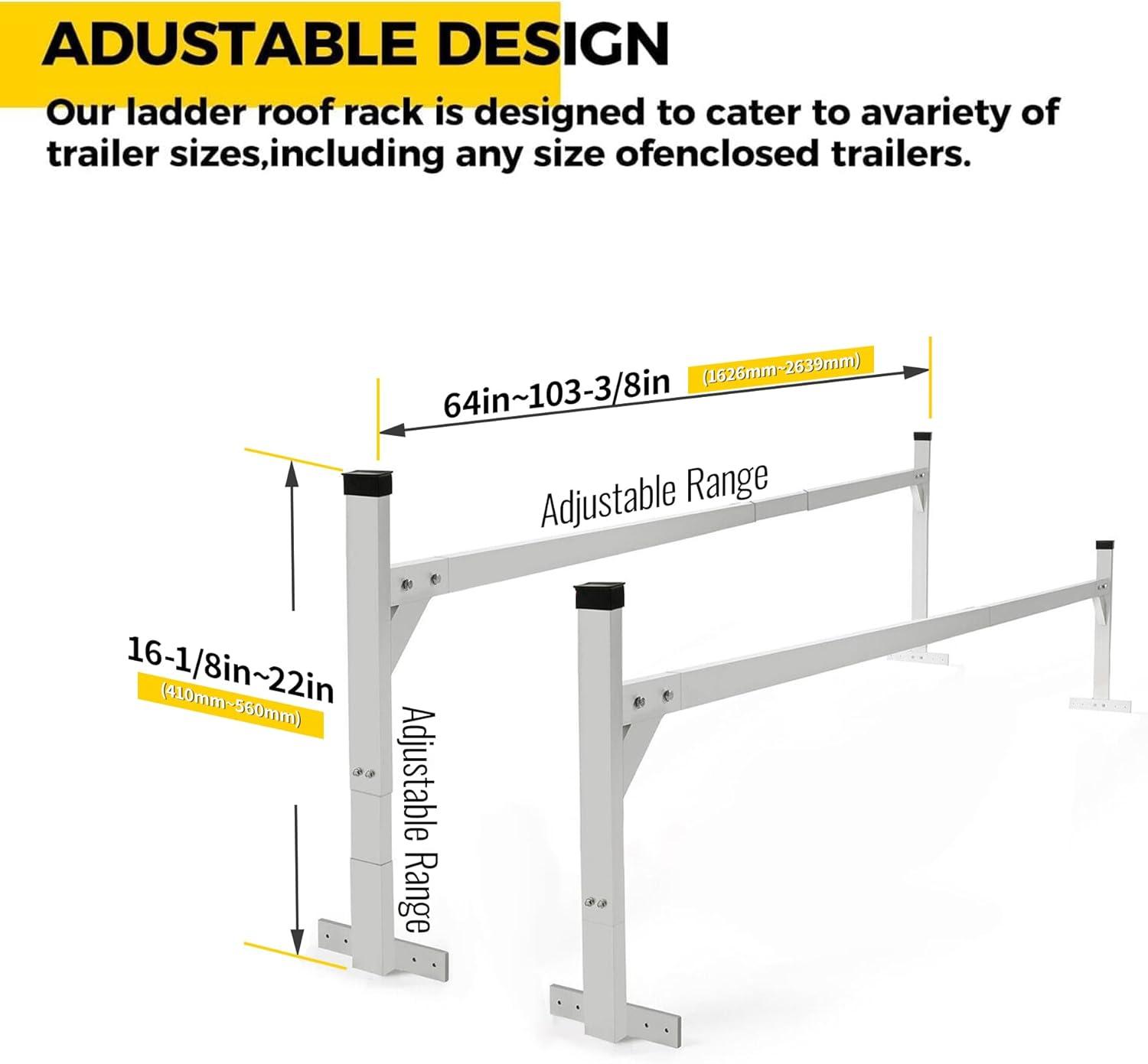 Adjustable Design: Size: 5.3' to 8.6'. Our ladder roof rack is designed to cater to a variety of trailer sizes, including any size of enclosed trailers