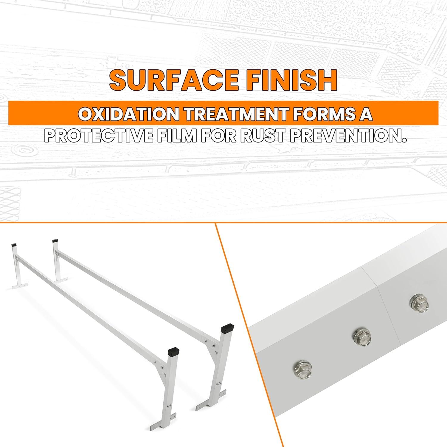 Surface Finish: The black powder coat treatment ensure that the ladder roof rack is not easy to rust in rain and snow weather. It increases the lifespan of the rack and also improves the appearance of your vehicle