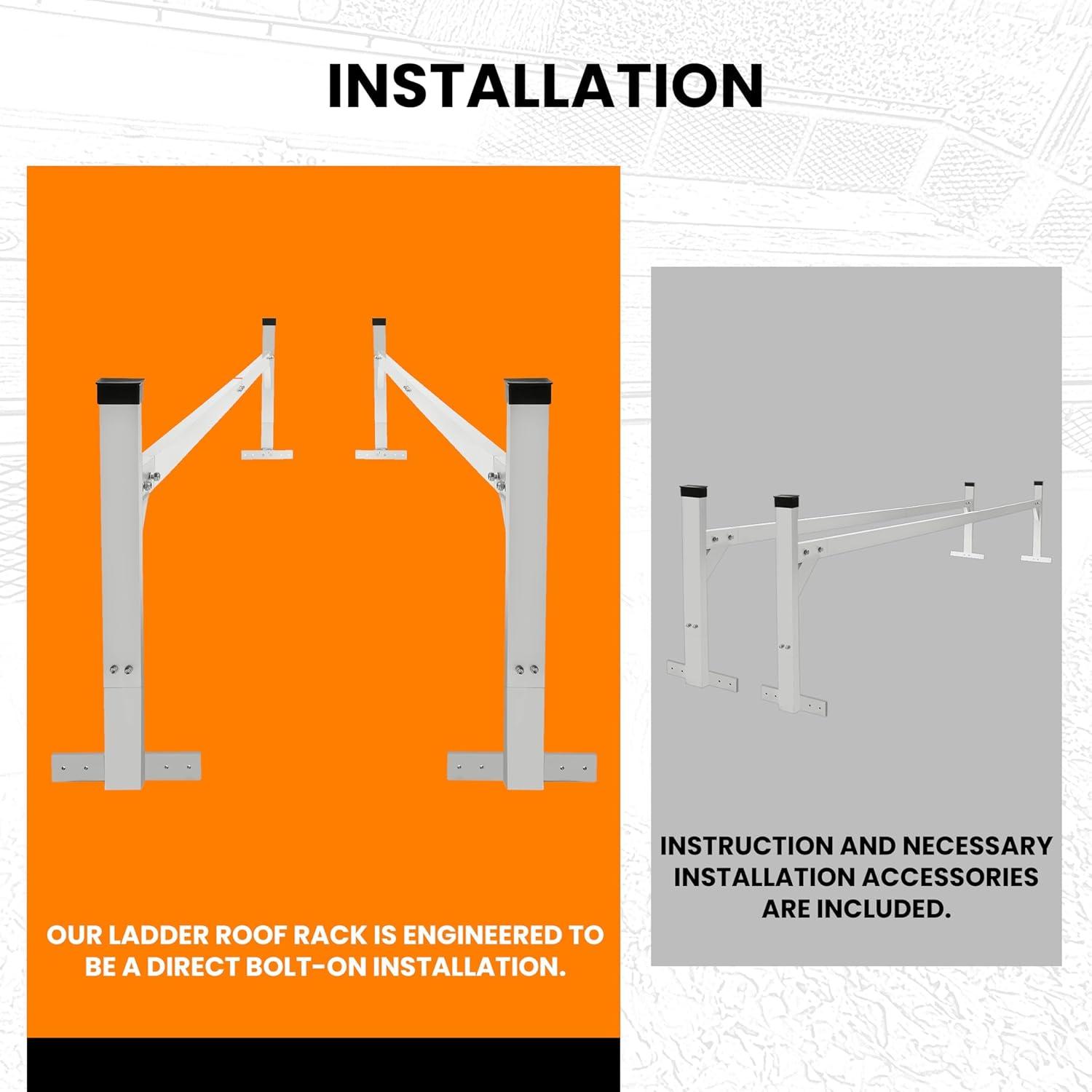 Installation: Our ladder roof rack is engineered to be a direct bolt-on installation. Instruction and necessary installation accessories are included