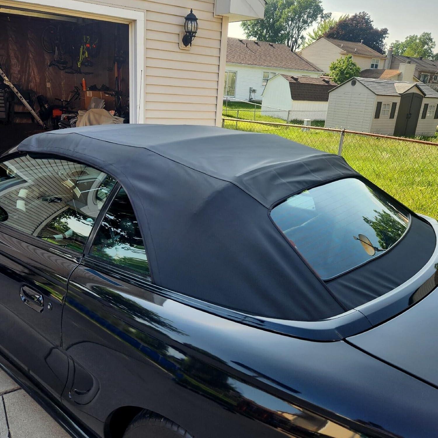 Kojem Convertible Soft Top Sailcloth Vinyl Roof with Heated Glass Window Compatible with 1994-2004 Ford Mustang(Black) (CP-131-1)
